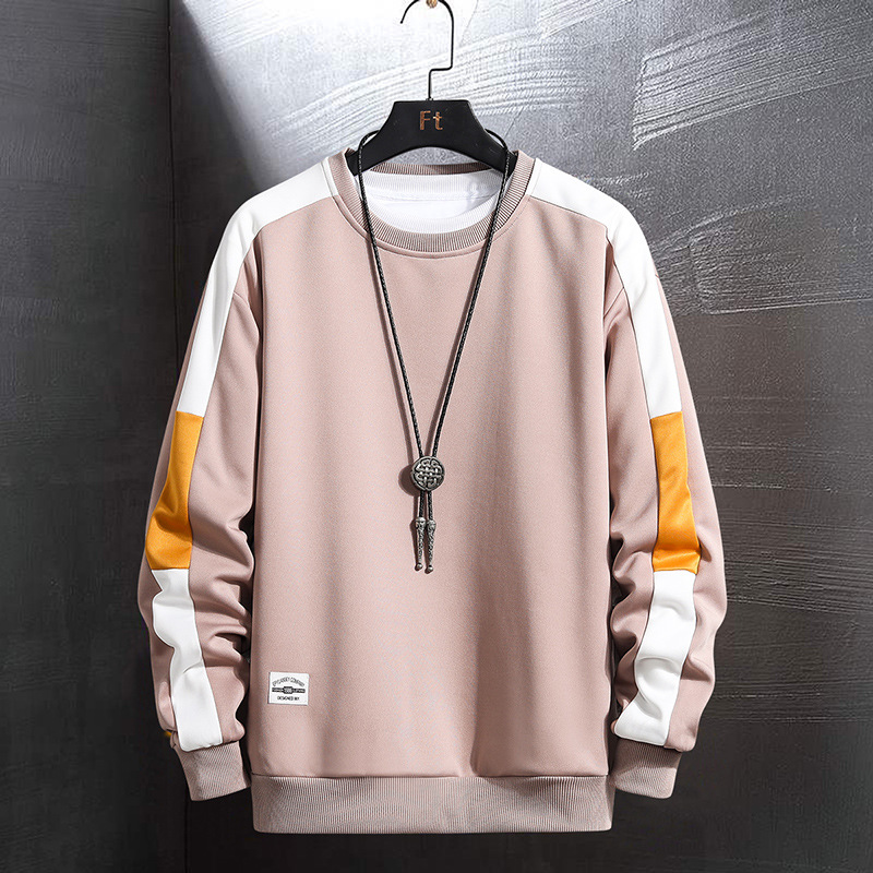 卫衣男潮流圆领套头外套袖子拼色青年休闲上衣男打底衫一件代发