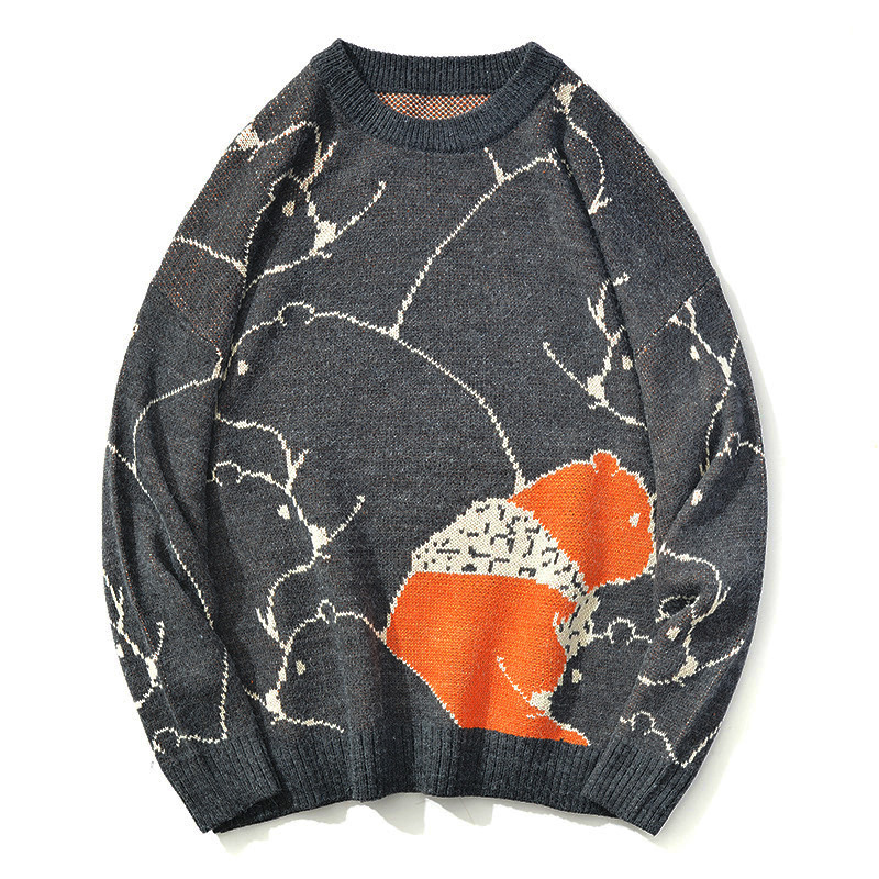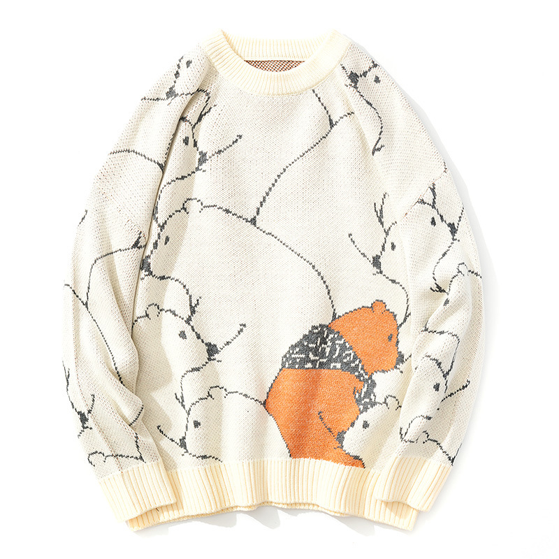 日系复古提花针织衫慵懒风小熊男士毛衣秋冬新款宽松外套韩版潮流
