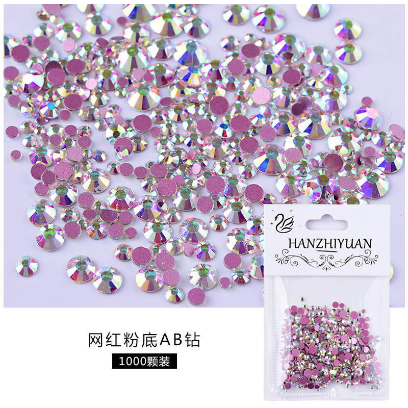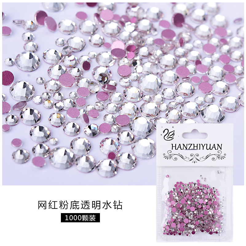 批发1000颗网红仿施华粉色底美甲平底钻超闪大小混指甲白钻AB水钻