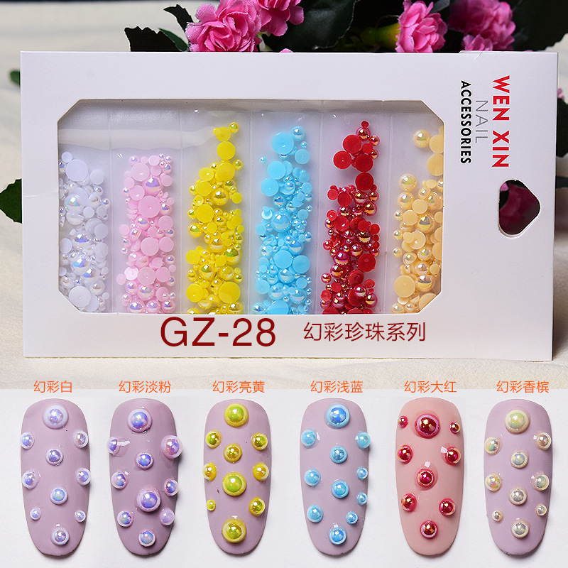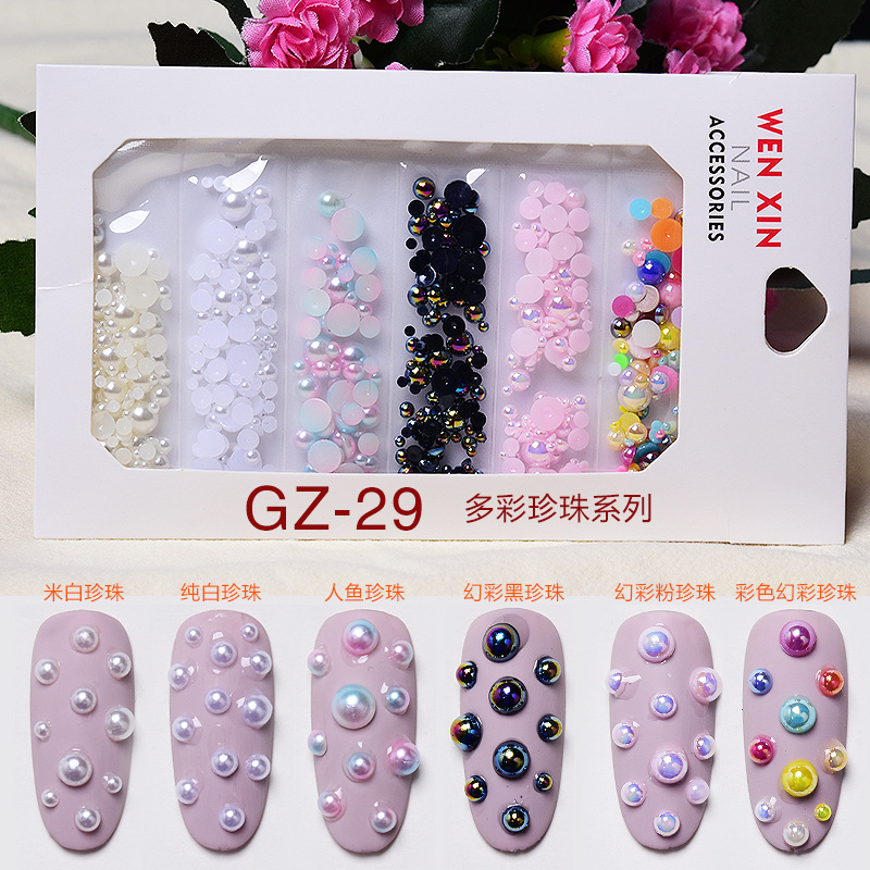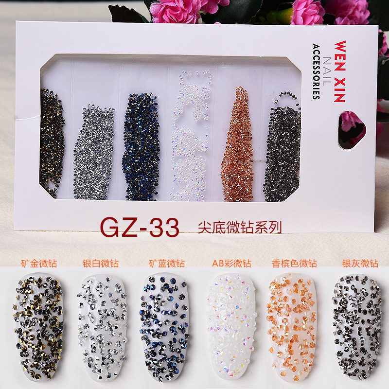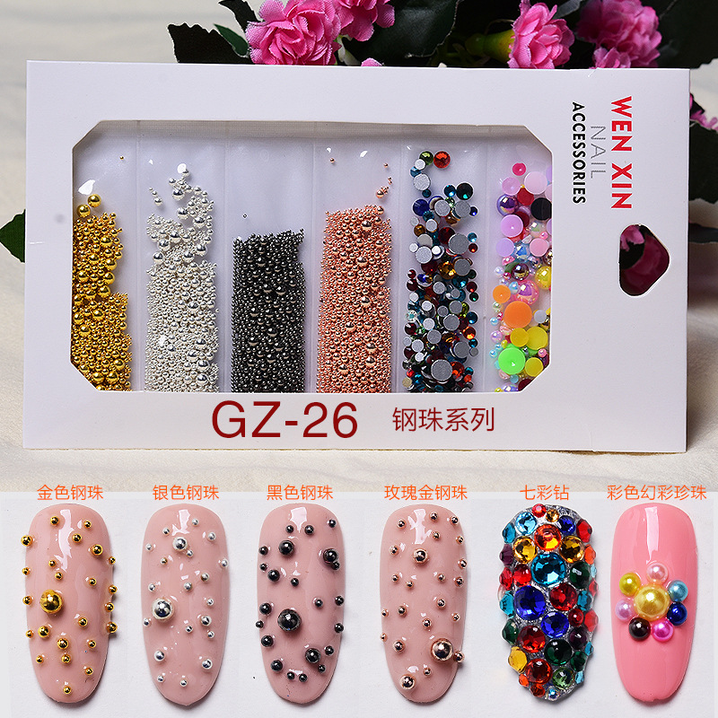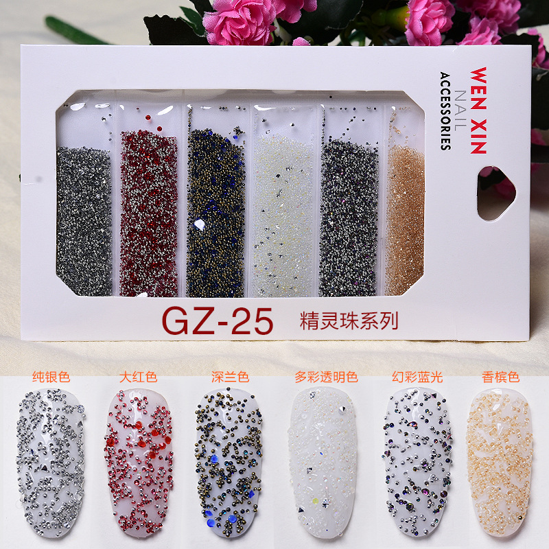 批发日系美甲饰品铆钉水钻珍珠纽约风暴混钢珠微钻精灵珠6格饰品