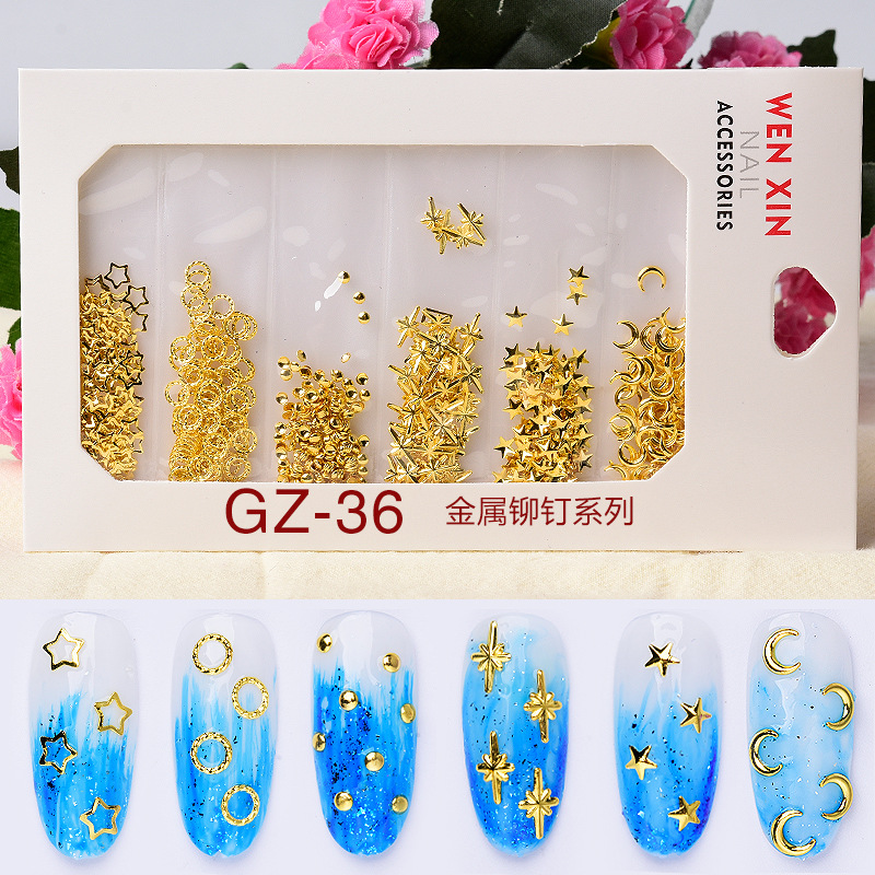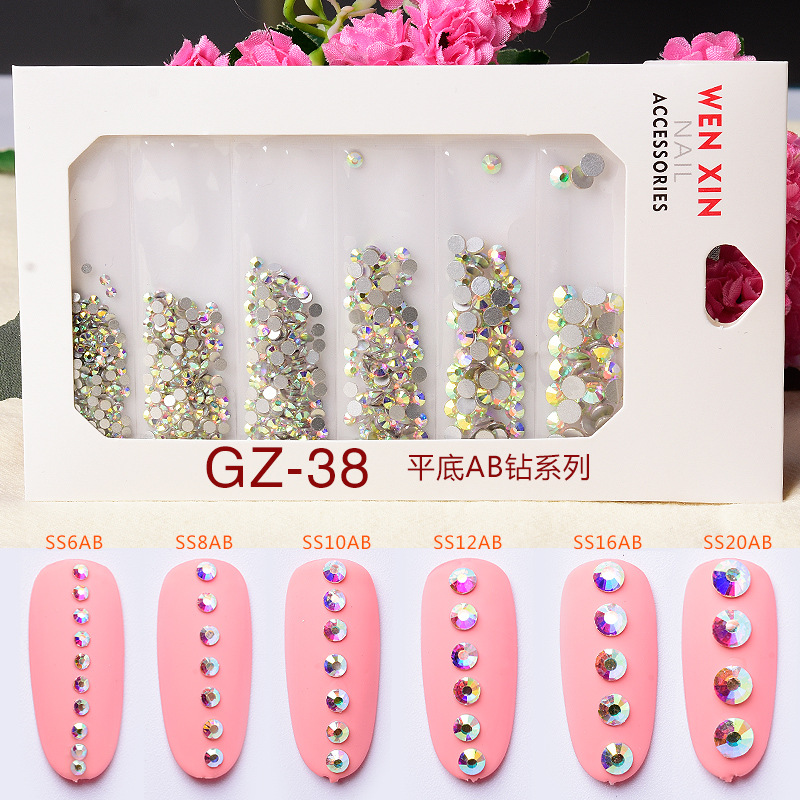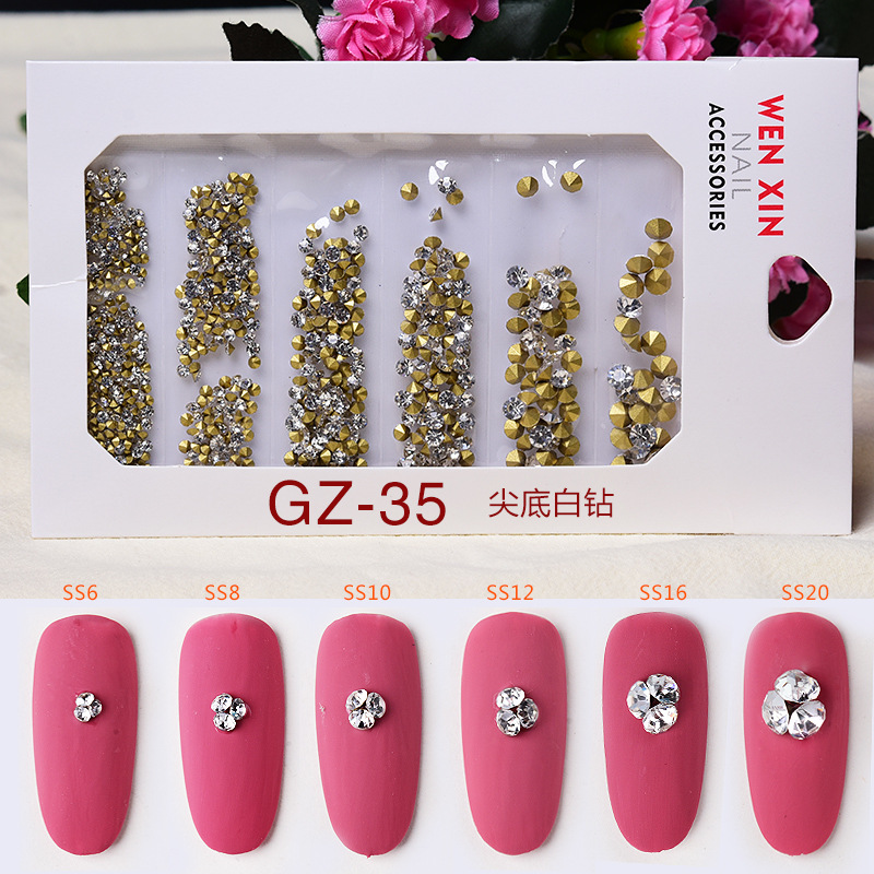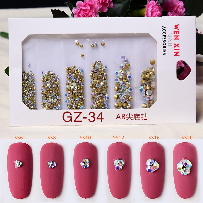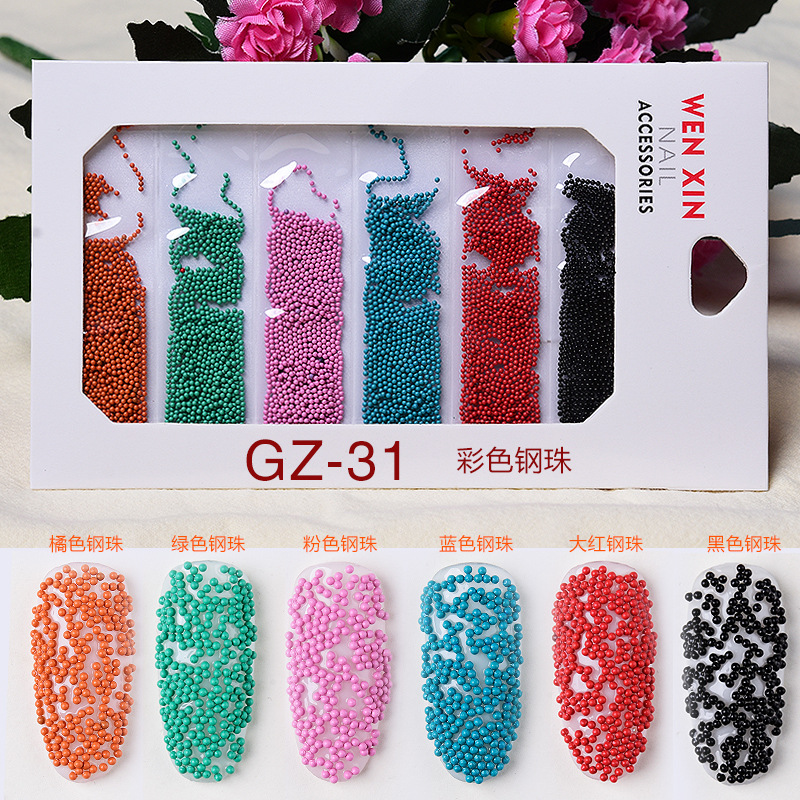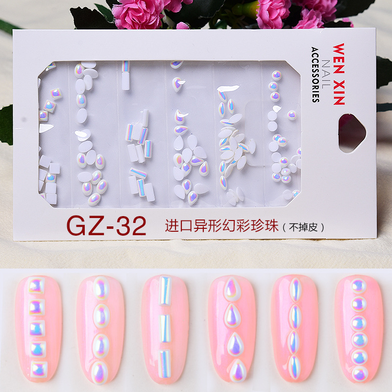 批发日系美甲饰品铆钉水钻珍珠纽约风暴混钢珠微钻精灵珠6格饰品