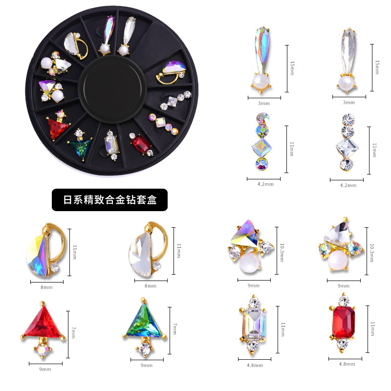 跨境专供美甲装饰合金饰品批发 圆盘饰品珍珠水滴网红钻饰转盘04