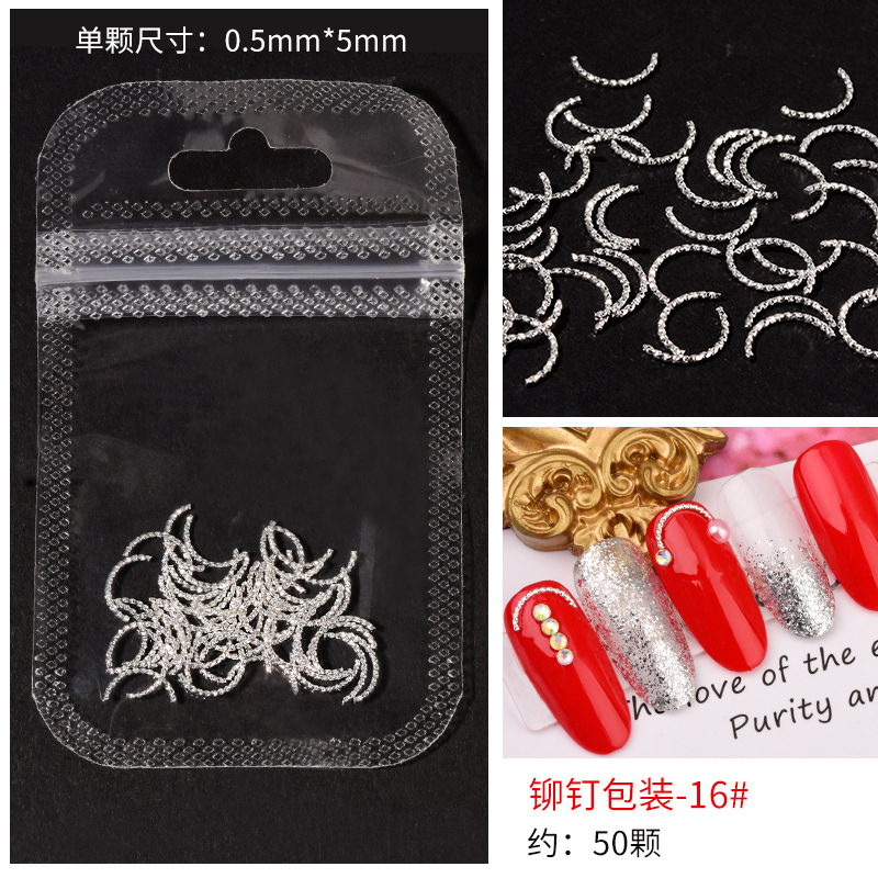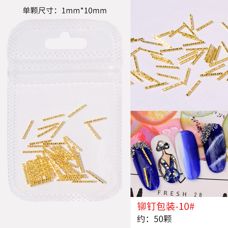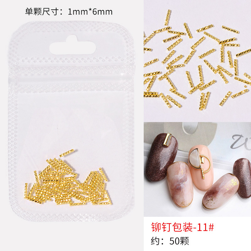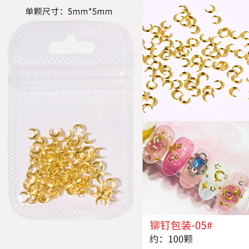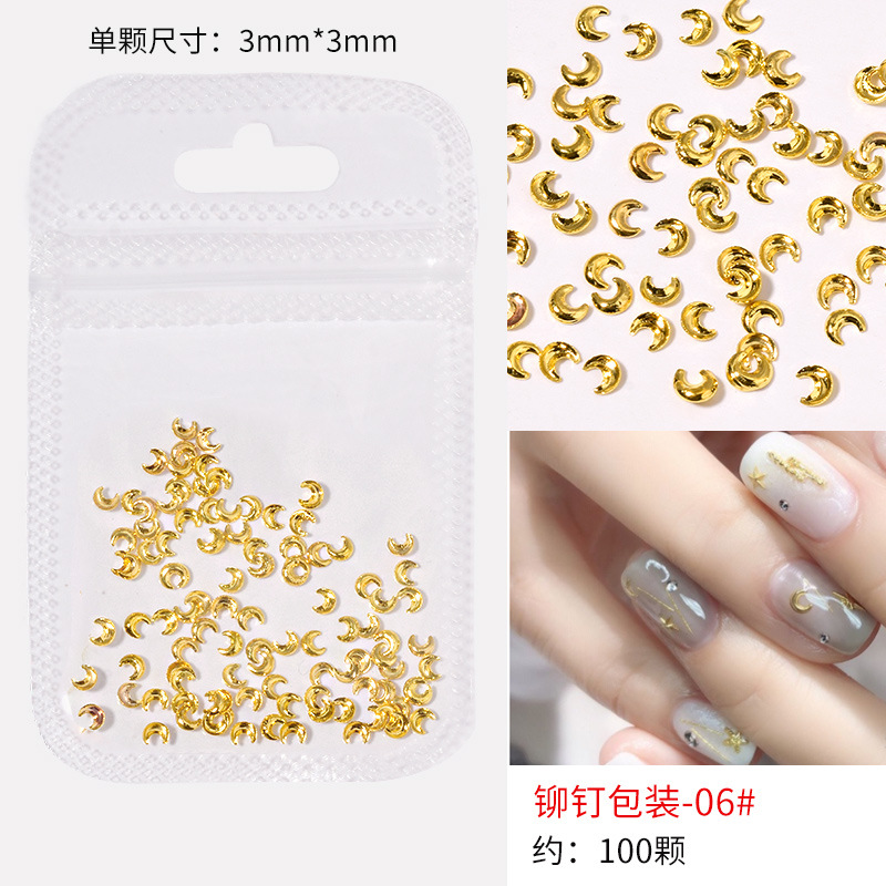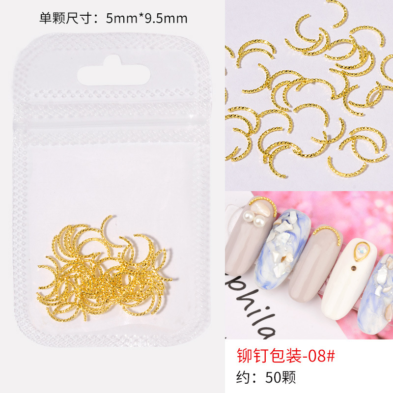 日系火爆美甲铆钉星月饰品金条弯棒金属贴片指甲饰品全铜美甲铆钉