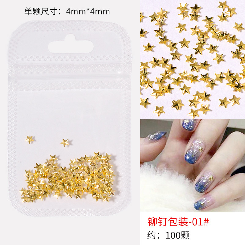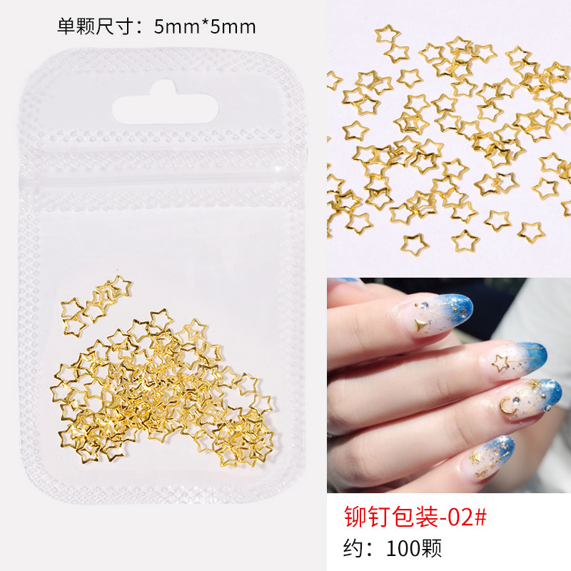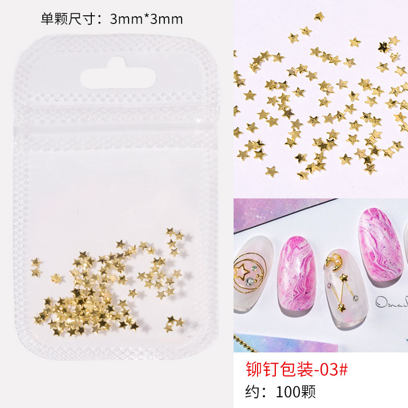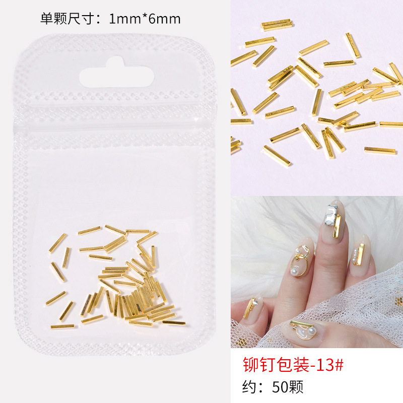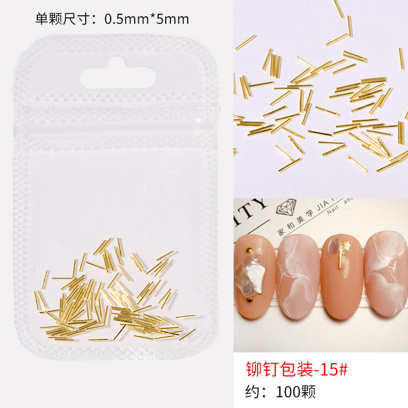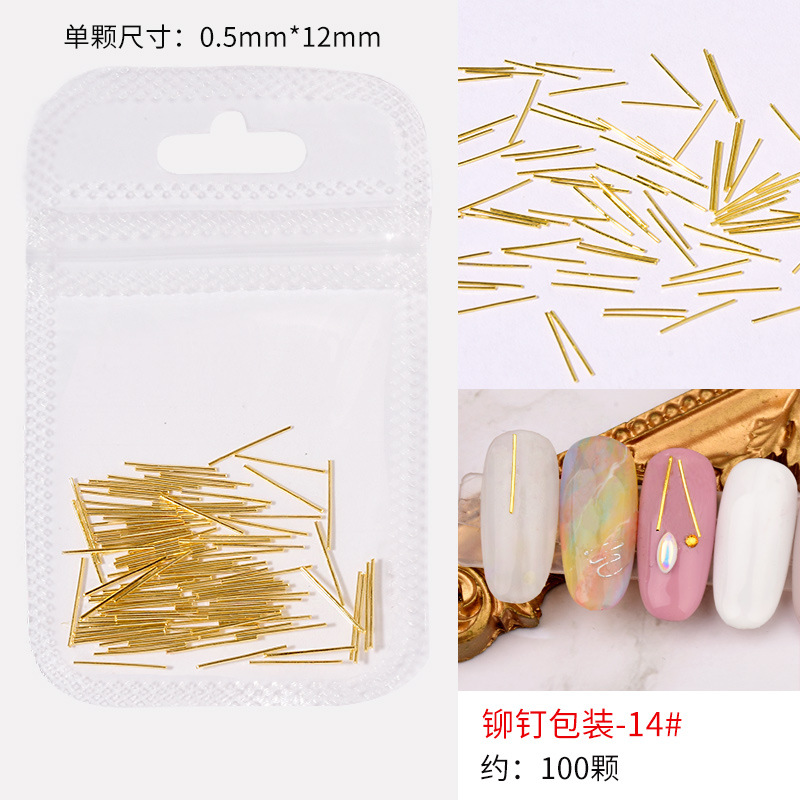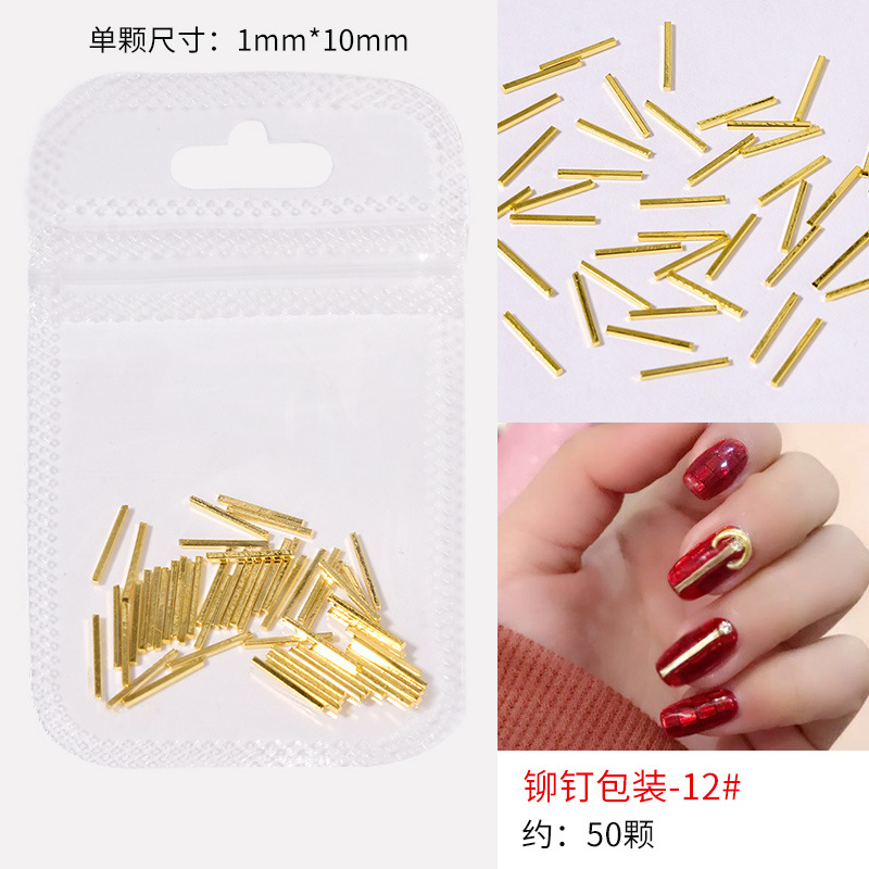 日系火爆美甲铆钉星月饰品金条弯棒金属贴片指甲饰品全铜美甲铆钉