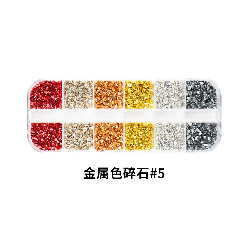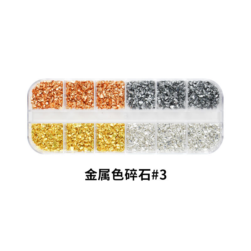 跨境专供美甲饰品新款金银碎石 高亮金属色不规则DIY美甲玻璃碎石