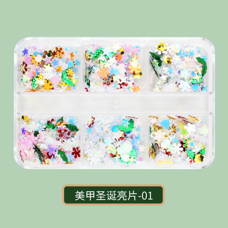 现货六格雪花美甲饰品圣诞节指甲装饰美甲圣诞亮片