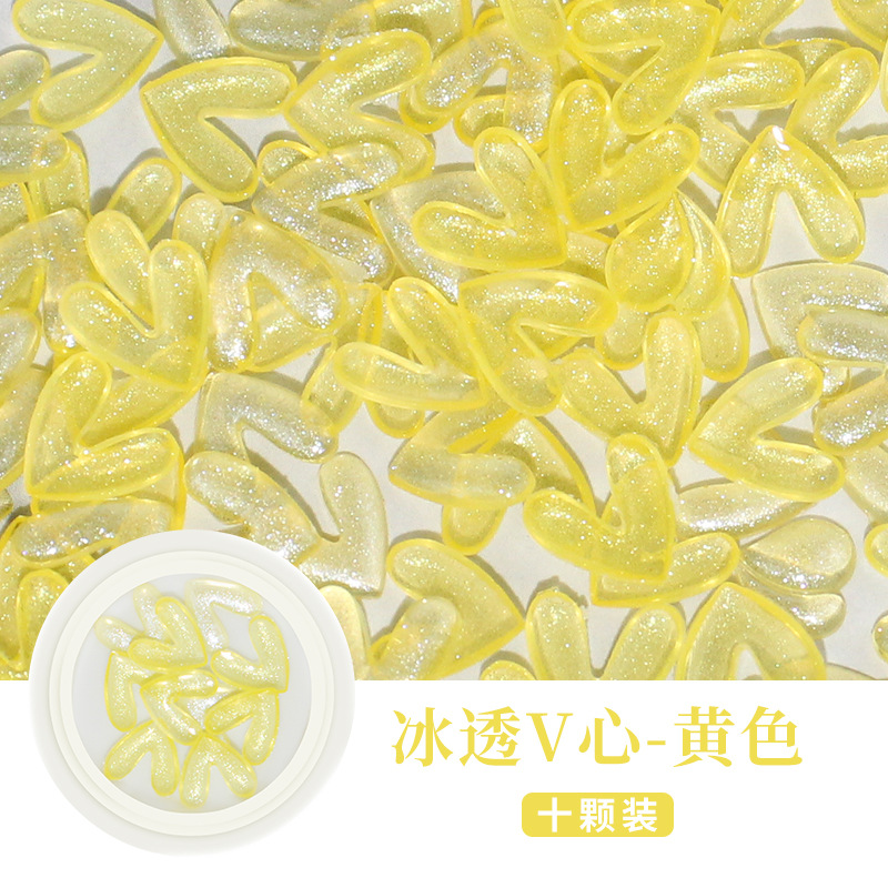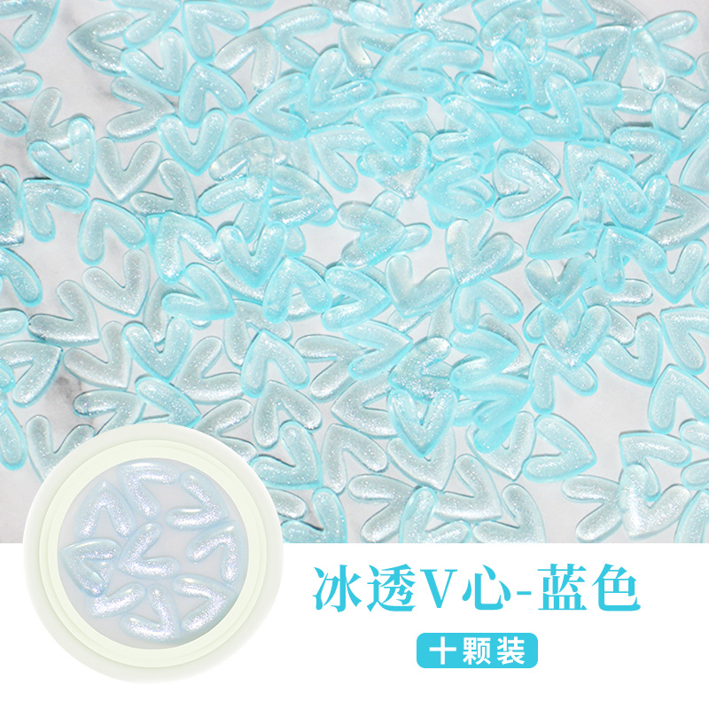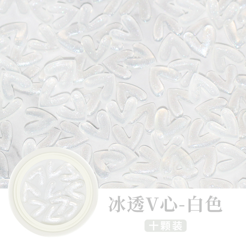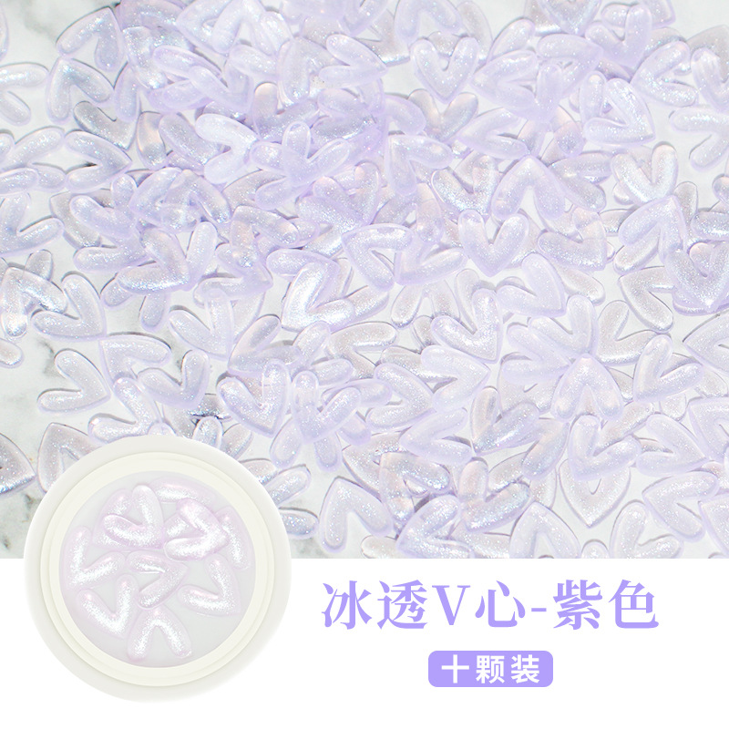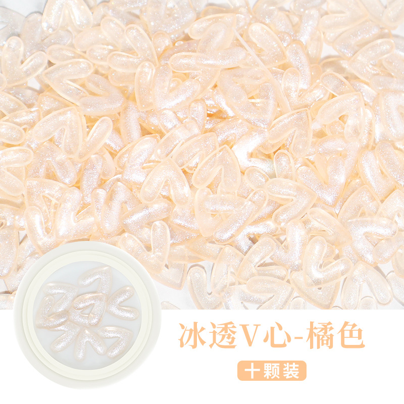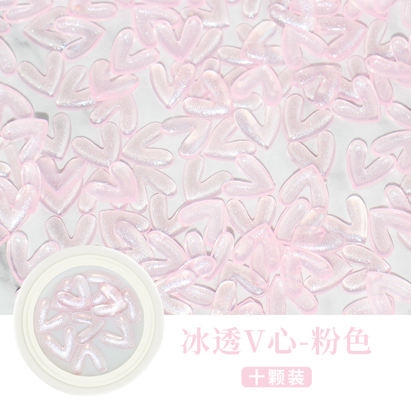 情人节心形饰品贴片V字形桃心树脂美甲饰品 极光幻彩爱心美甲贴钻