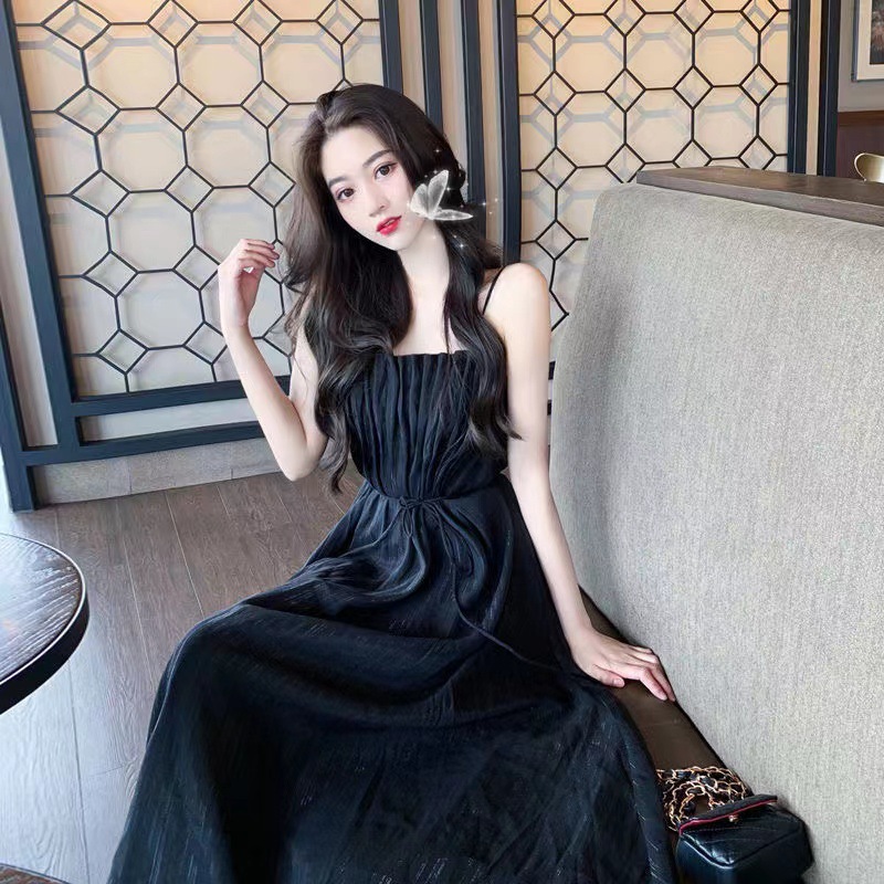 吊带长裙仙气森系显瘦显高气质收腰连衣裙子女夏季