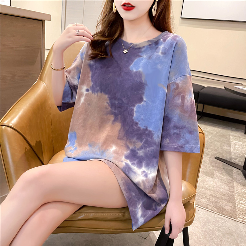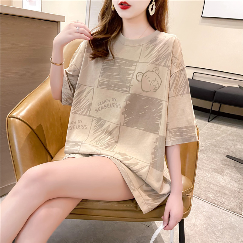 女装短袖t恤中长款宽松大码女士体恤印花上衣女一件代发