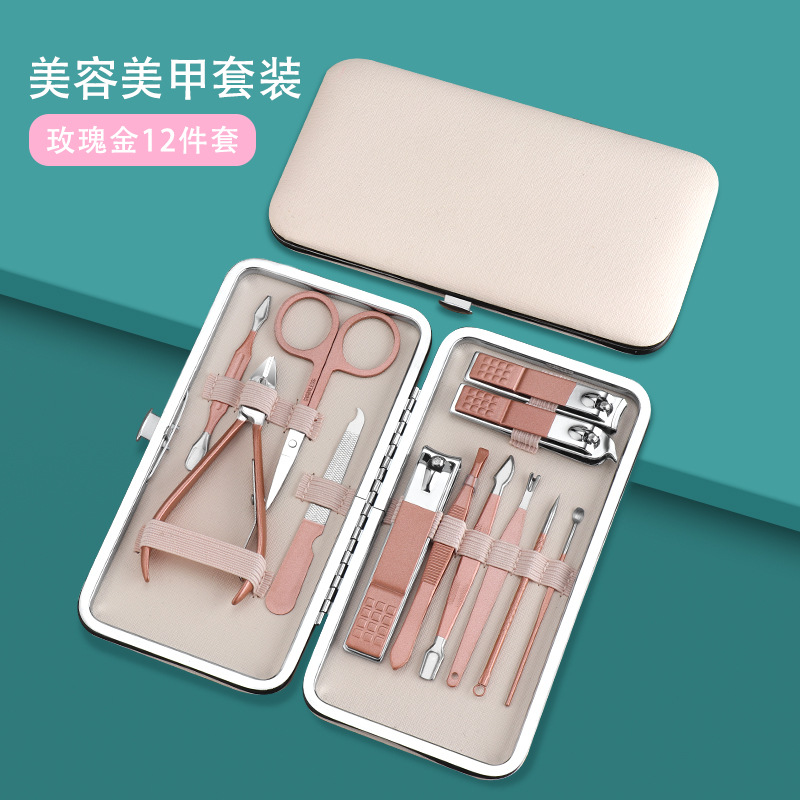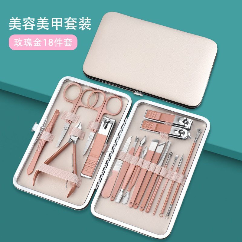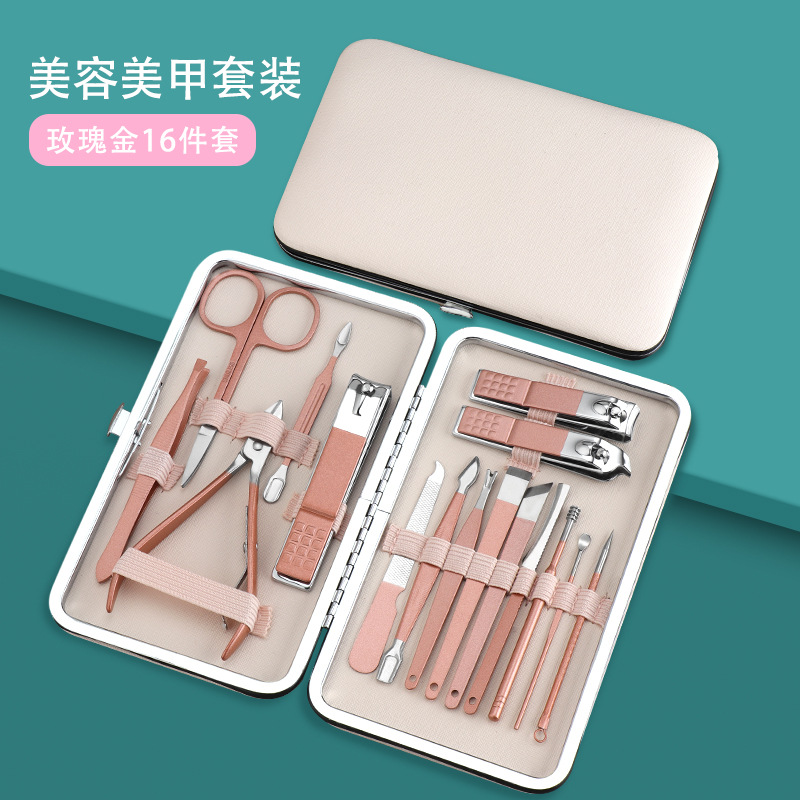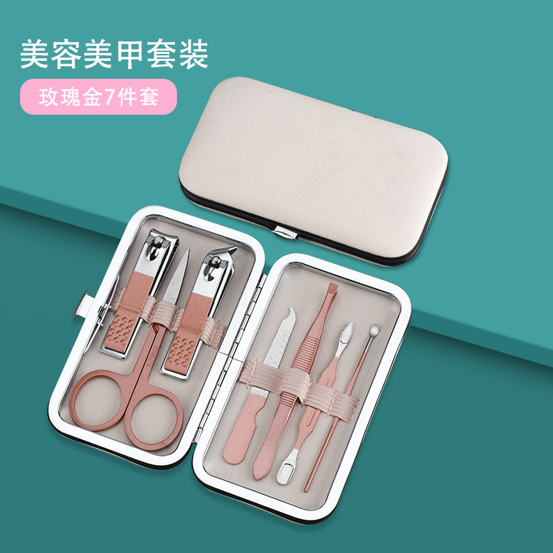 新款不锈钢指甲刀套装 玫瑰金7件套指甲钳套装修甲剪美甲工具