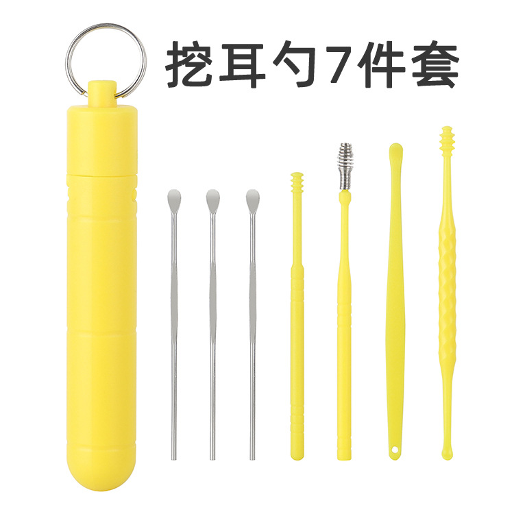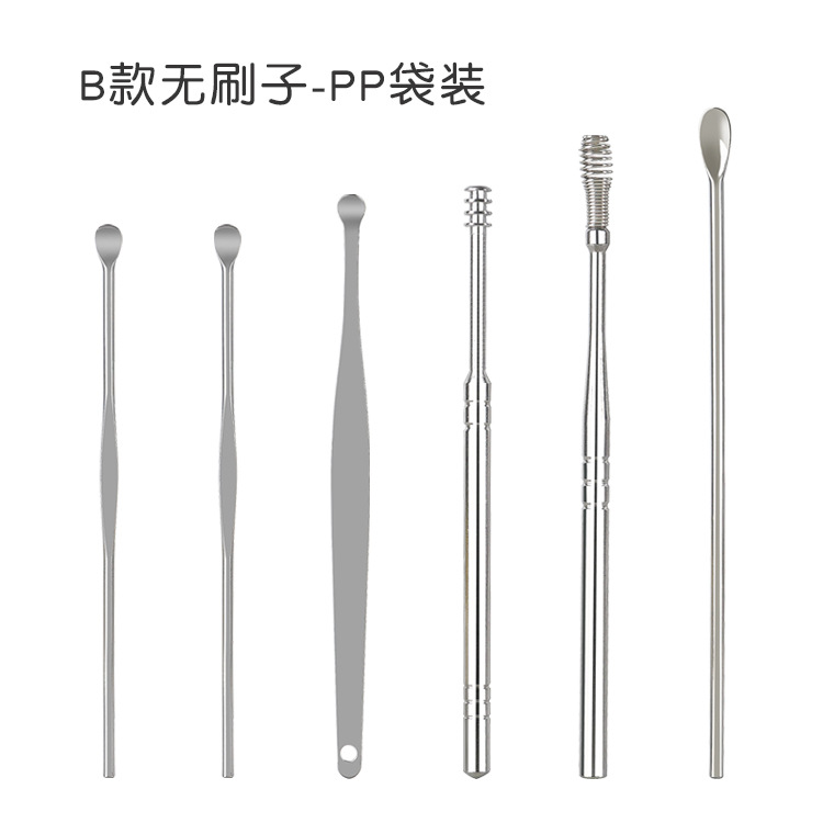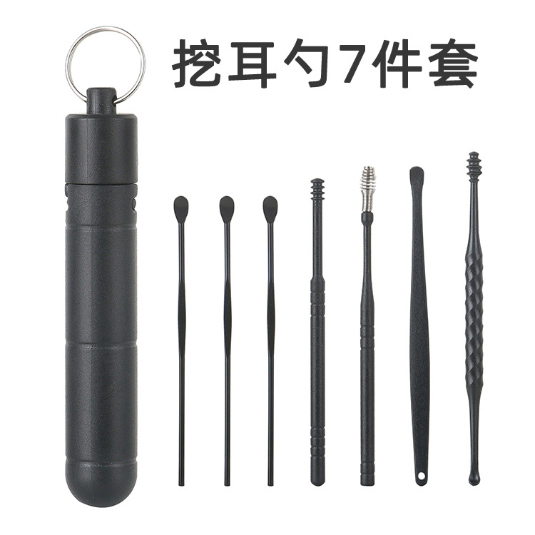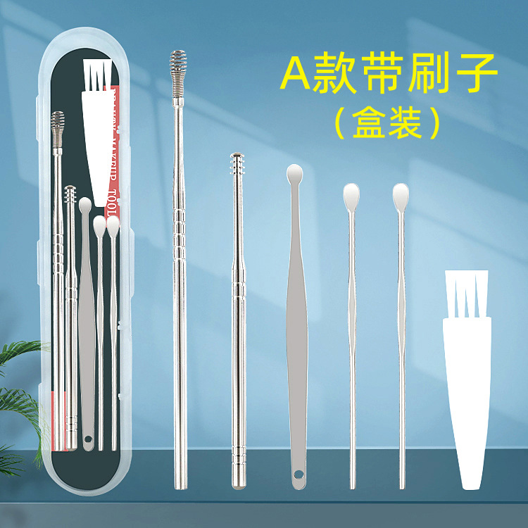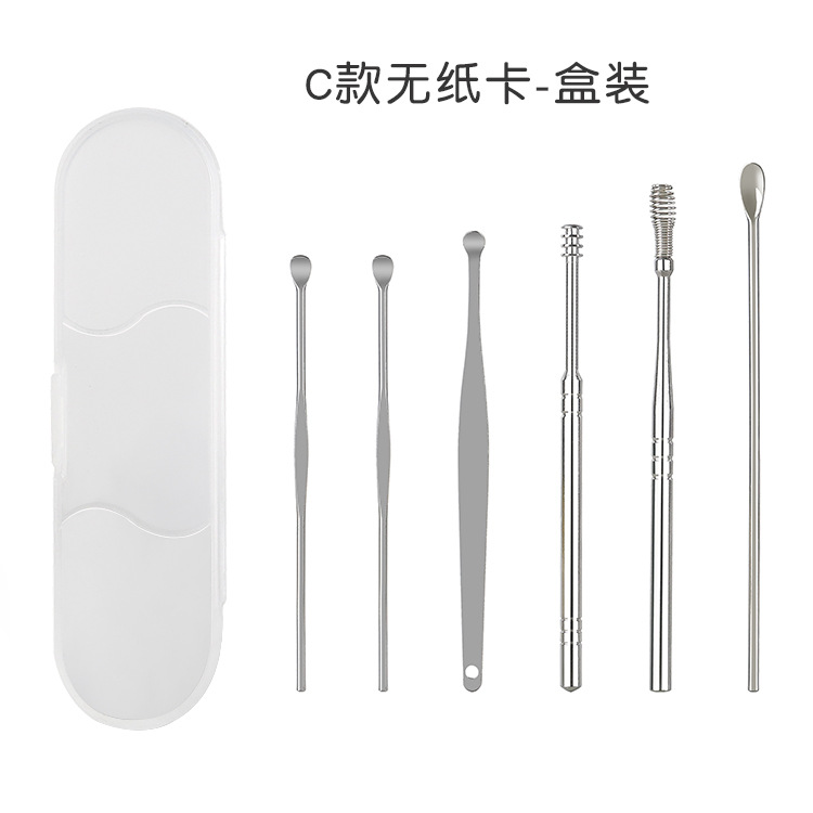 现货掏耳勺6件套家用挖耳朵采耳清洁工具套装便携螺旋弹簧耳勺