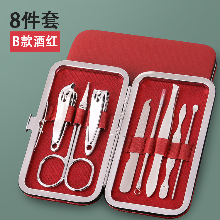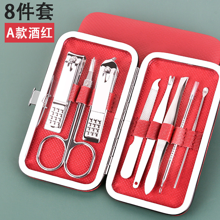 皮盒8件套美容美甲套装去死皮修脚指甲剪套装礼品组合指甲刀套装