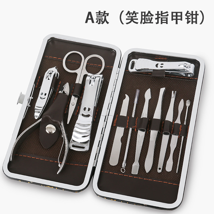 大号笑脸12件套指甲刀指甲剪套装眉剪耳挖美容钳礼品美甲工具