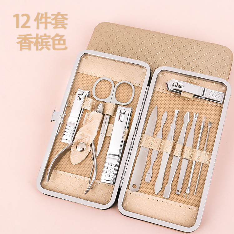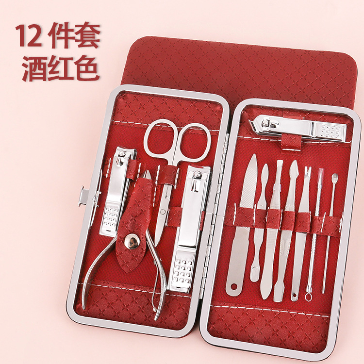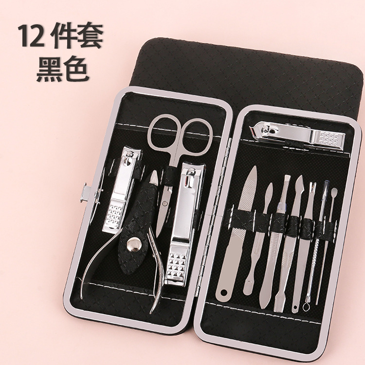 大号皮盒12件套美甲工具家用指甲剪眉剪粉刺针套装礼品指甲刀套装