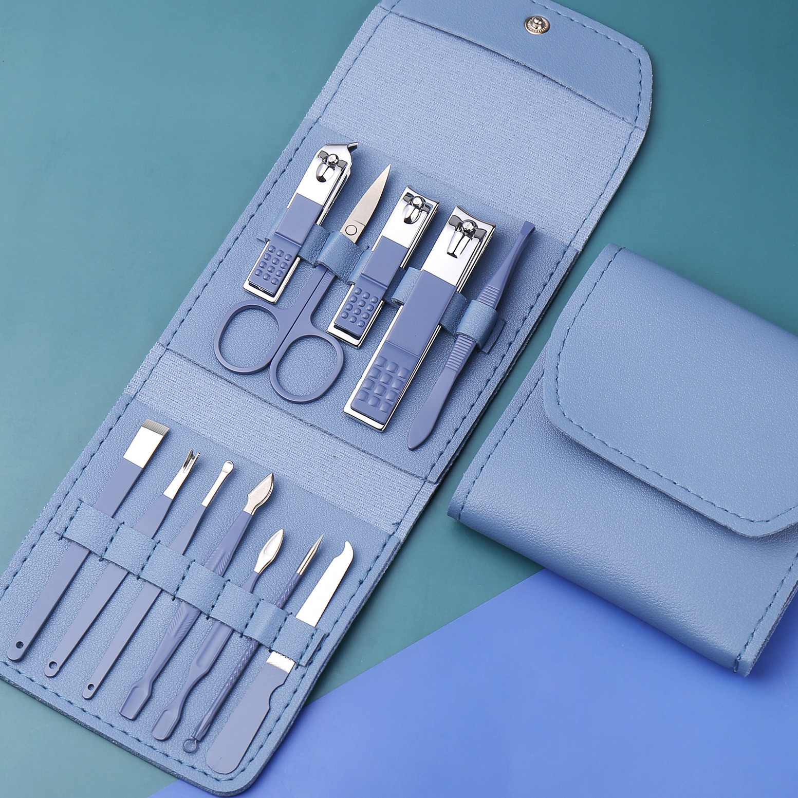 尊舵批发美容钳美甲 修脚刀修甲工具 不锈钢指甲剪套装12件套盒包