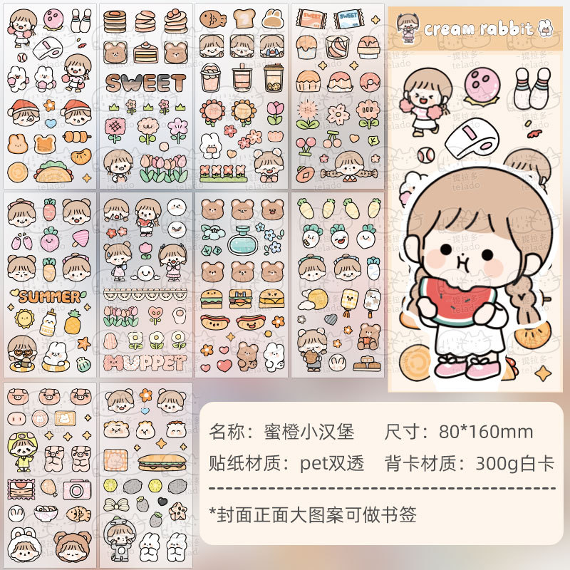 奶油兔日记PET防水贴纸手帐礼盒少女手账保温杯贴画 100张