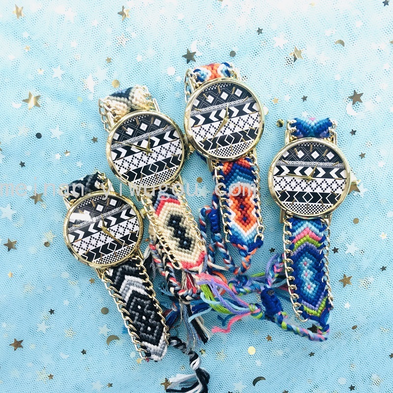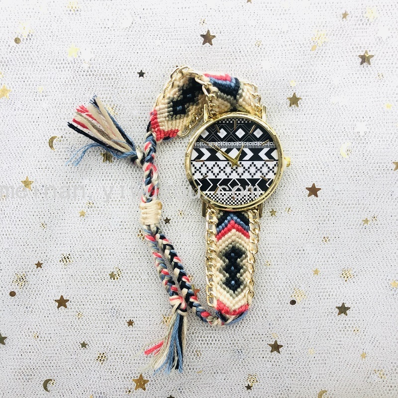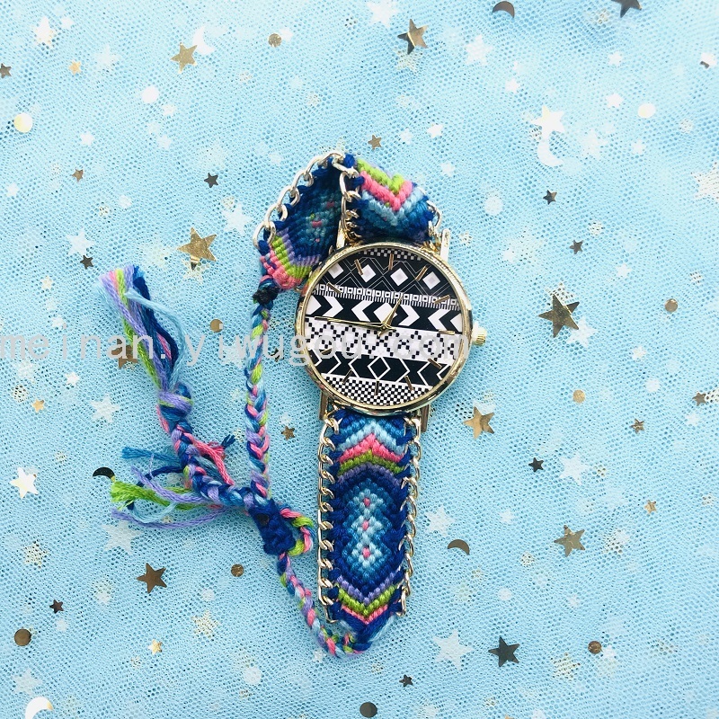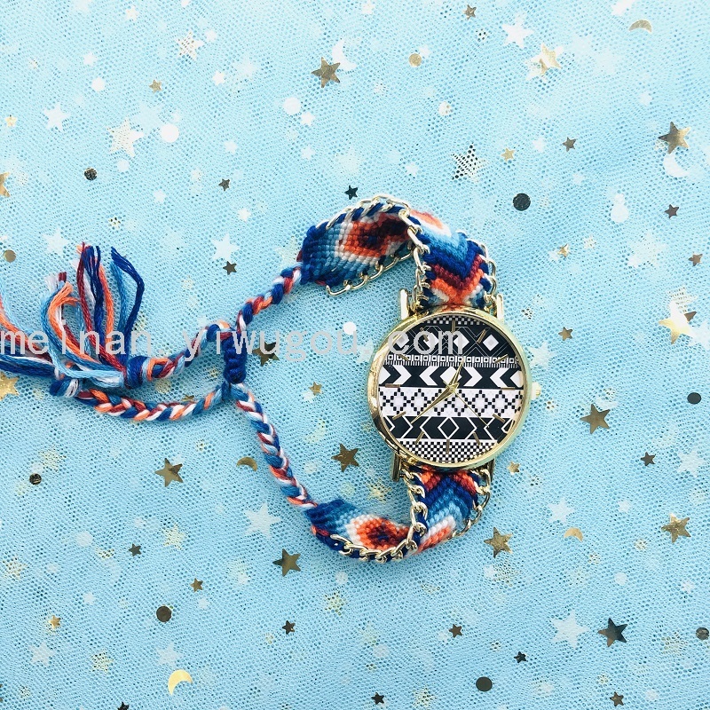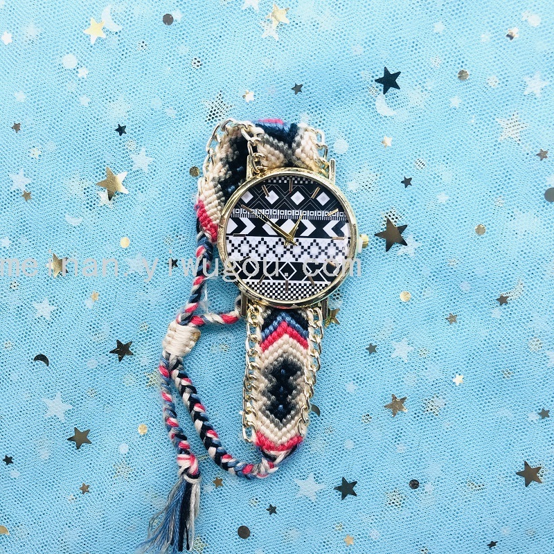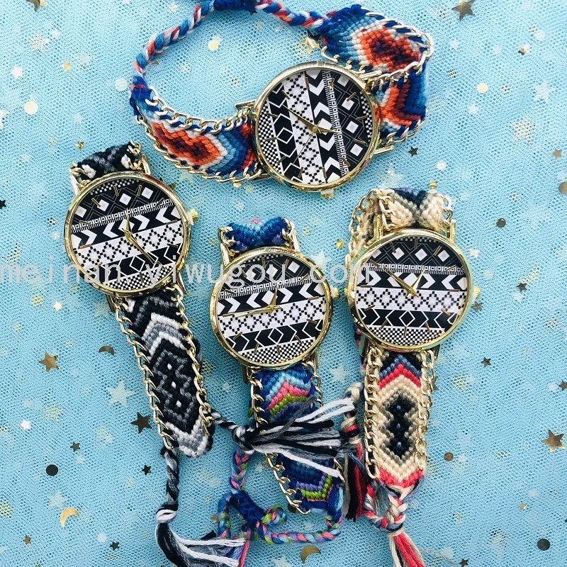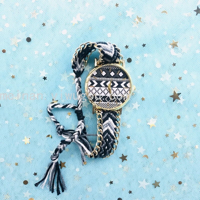民族风黑色线条女士手表 手工编织创意时尚毛线系列腕表