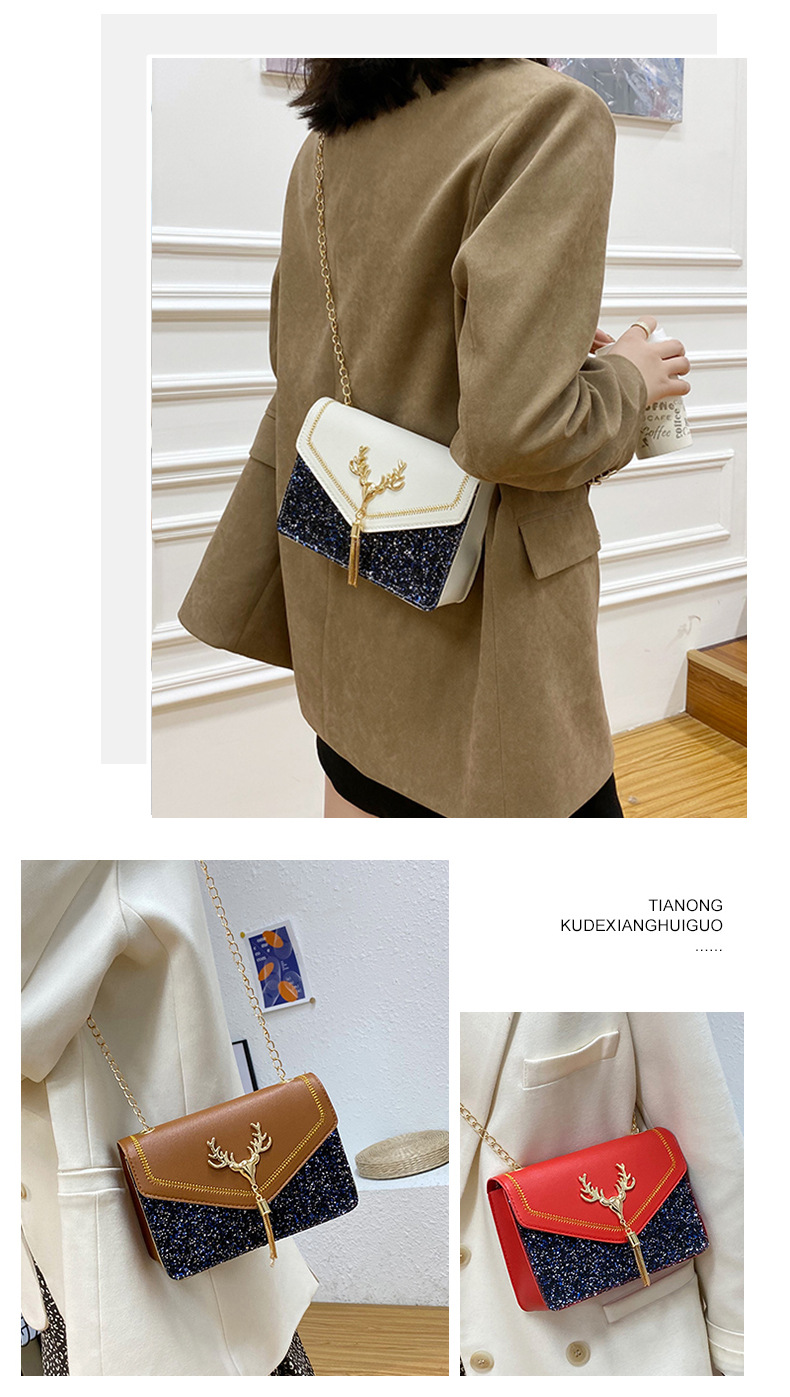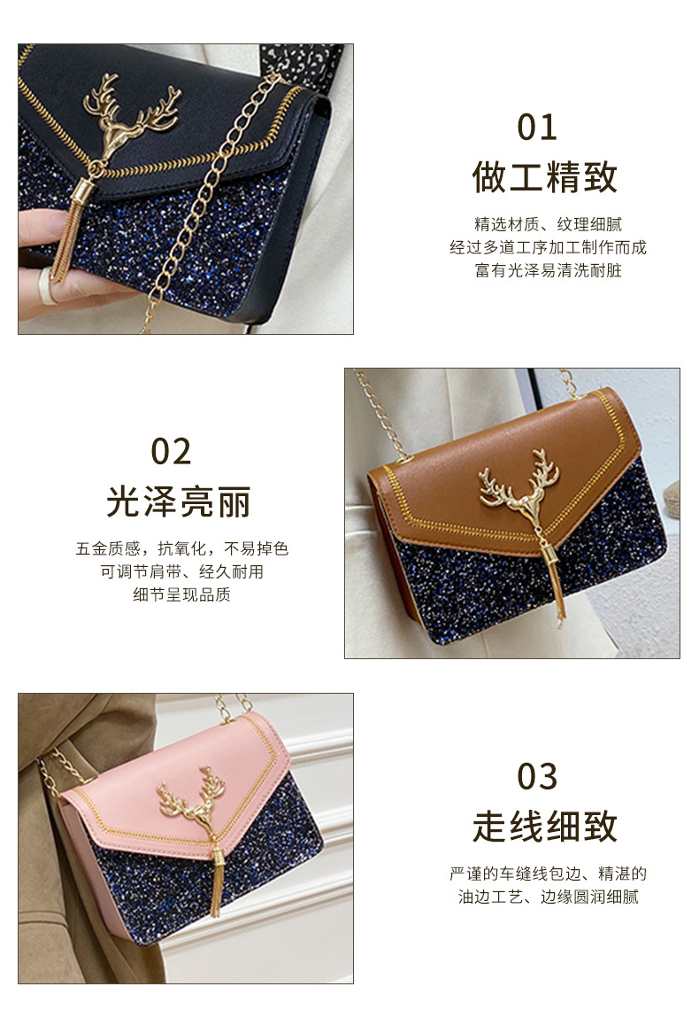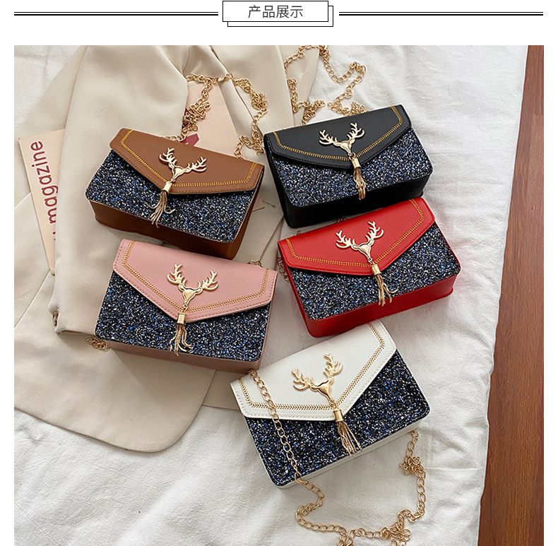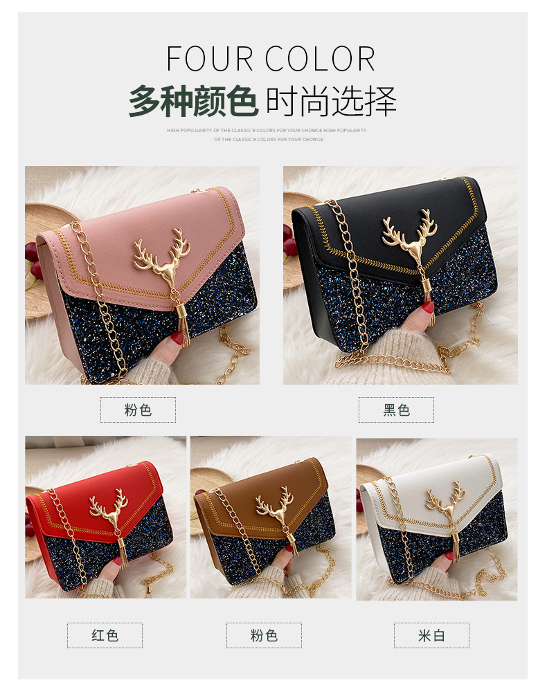 女士包包跨境小众设计链条斜挎方包流苏亮片手机包女小包