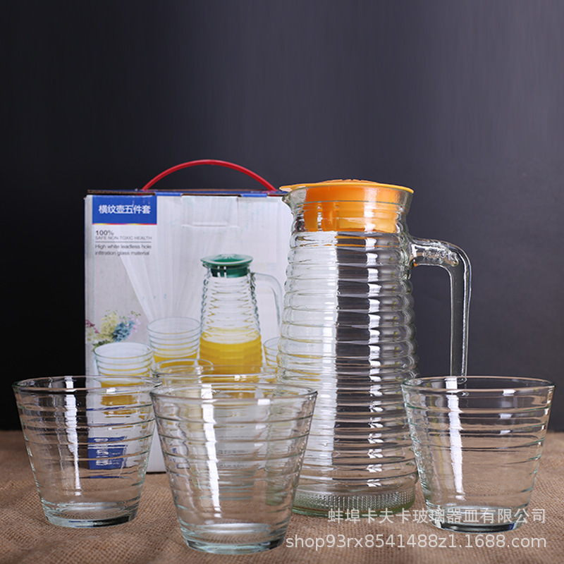 水壶套装波纹水具五件套八角壶果汁壶鸭嘴玻璃凉壶礼品批发