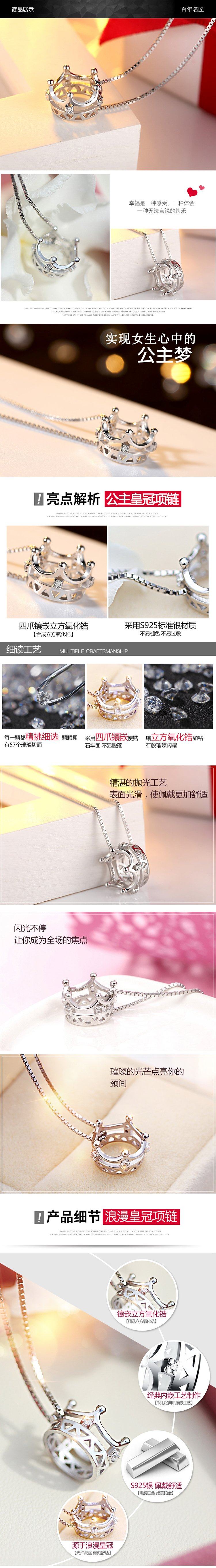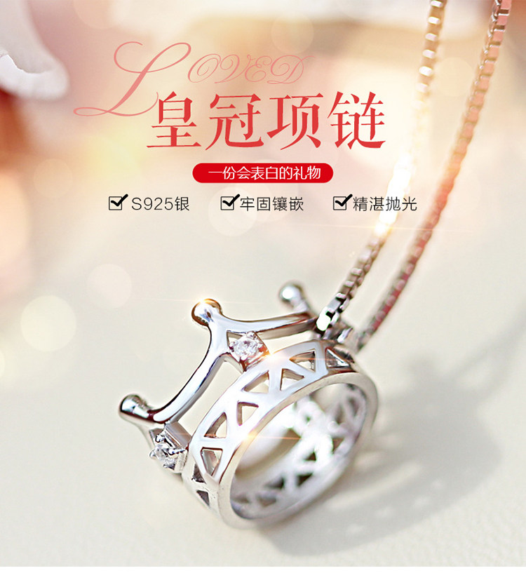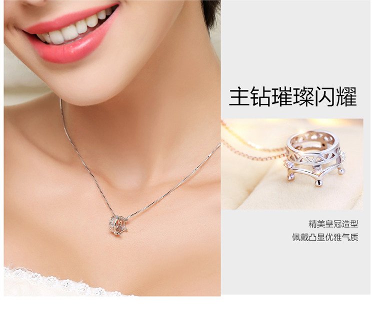 饰品银项链女王钻石镶钻复古吊坠几何饰品简约跨境批发