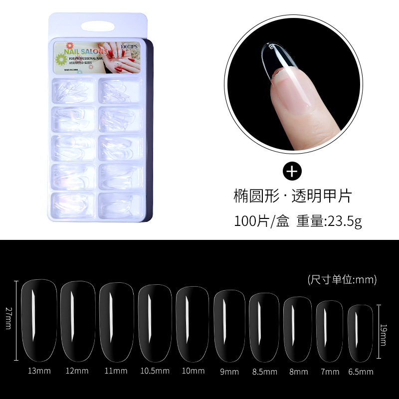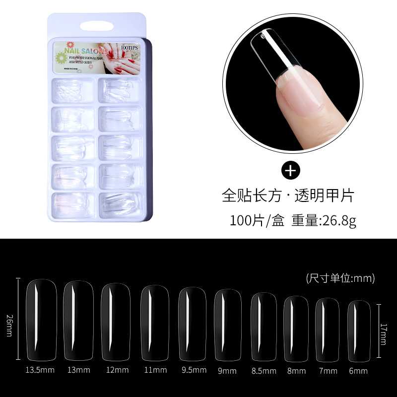 美甲100片盒装甲片超薄无痕假指甲贴片梯形法式全贴半贴两用甲片