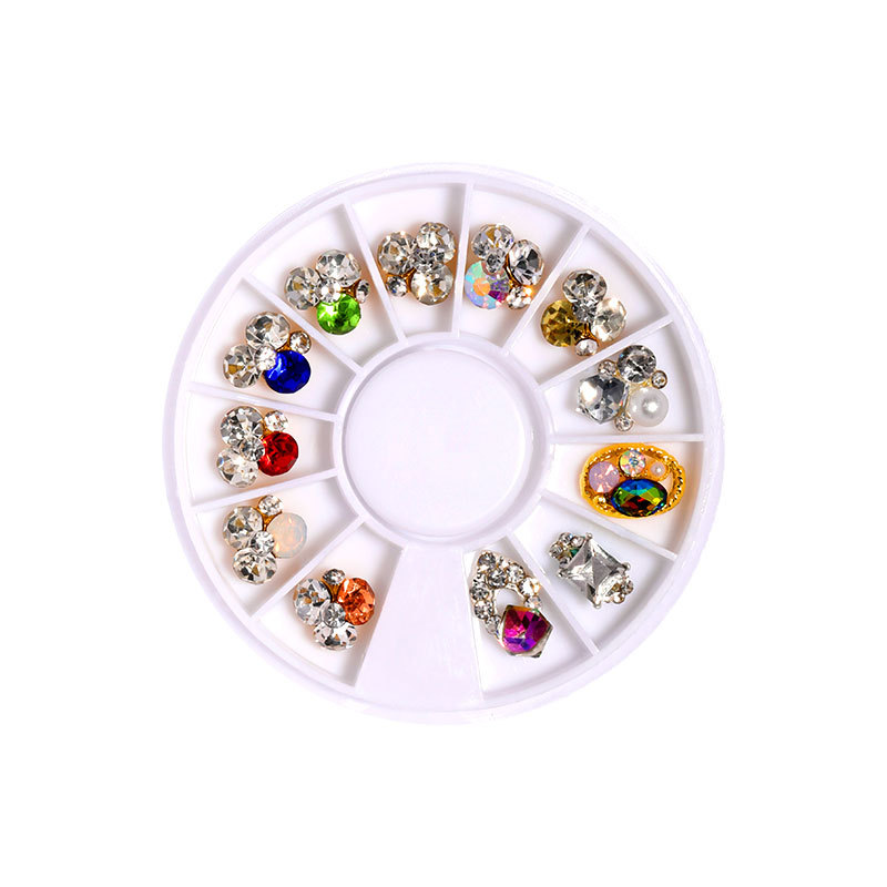 爆款美甲堆钻饰品混装珍珠超闪玻璃水钻12格组合指甲钻石装饰品