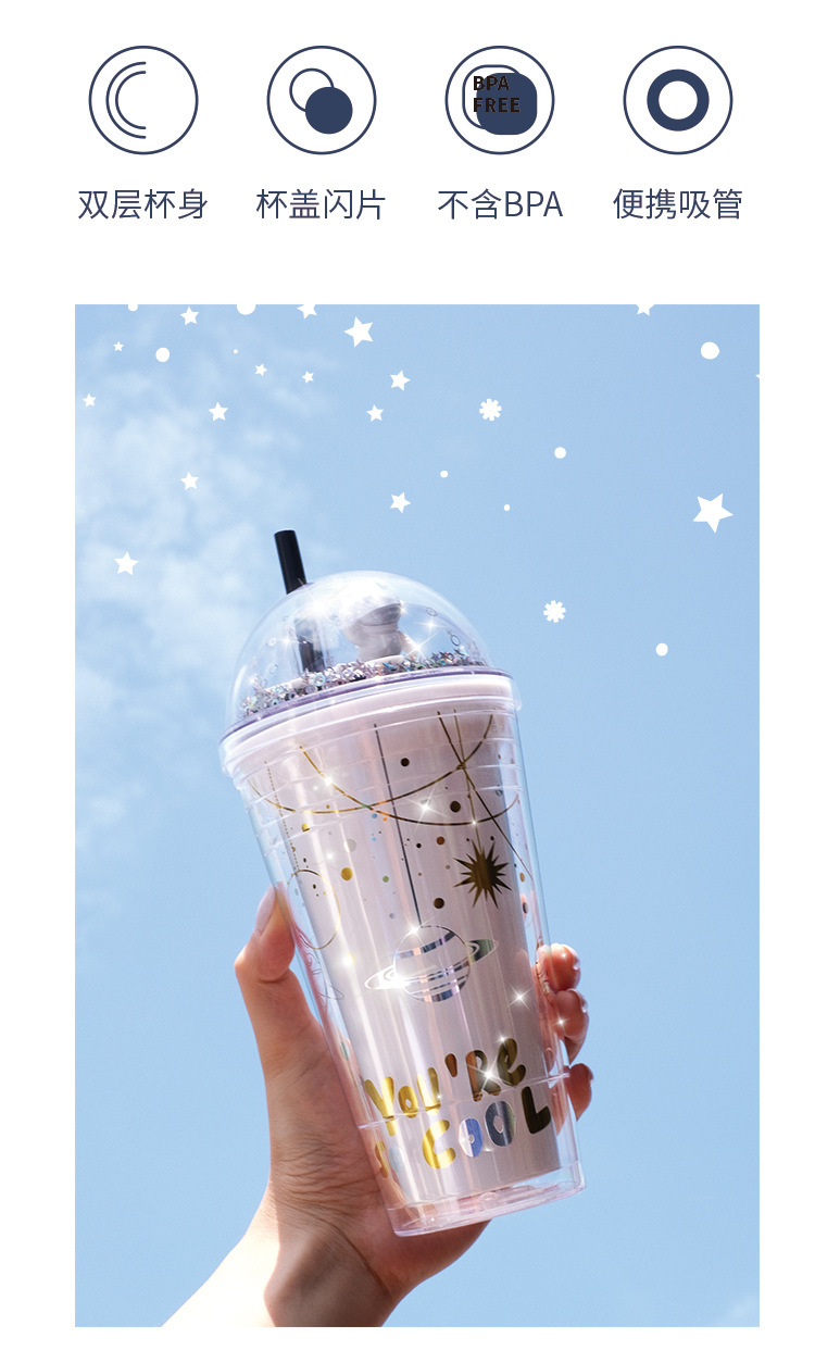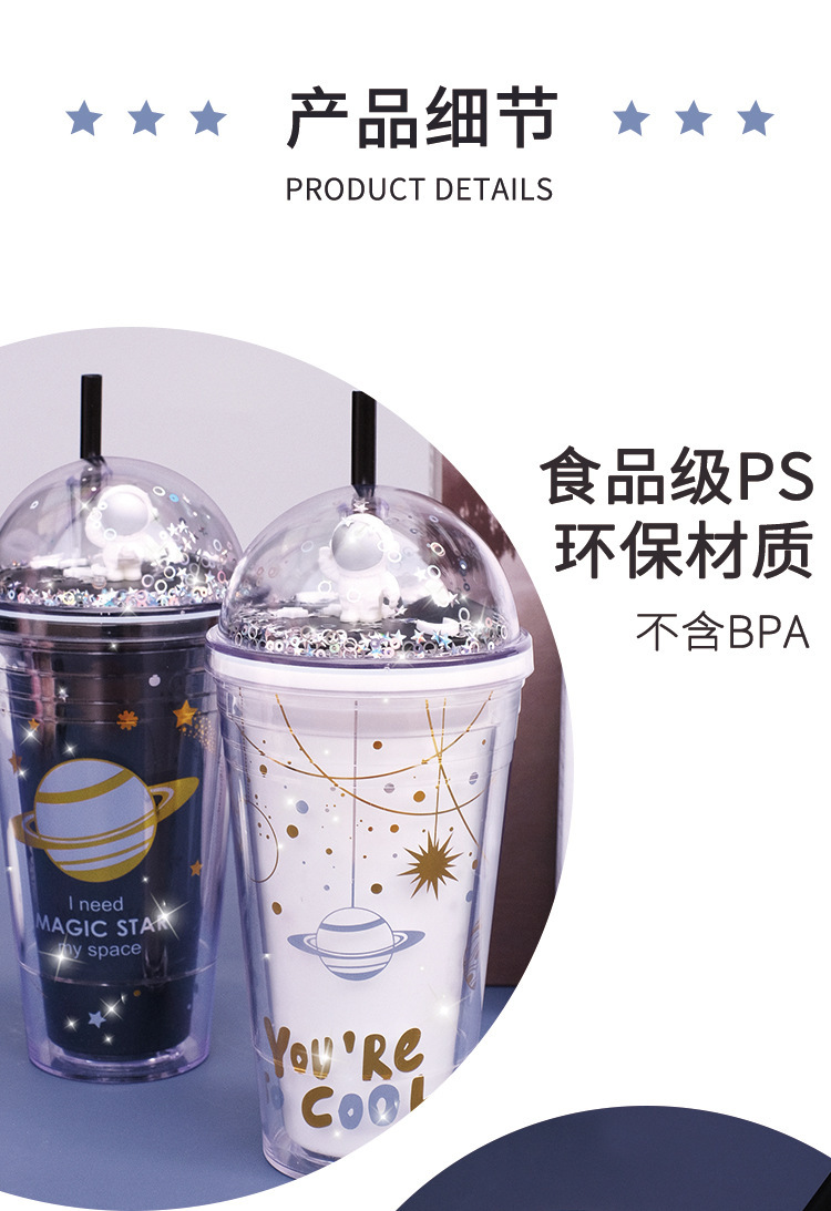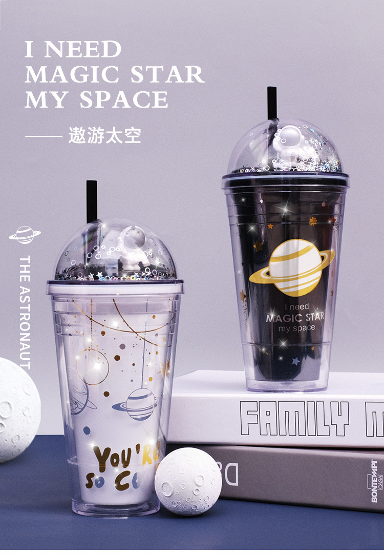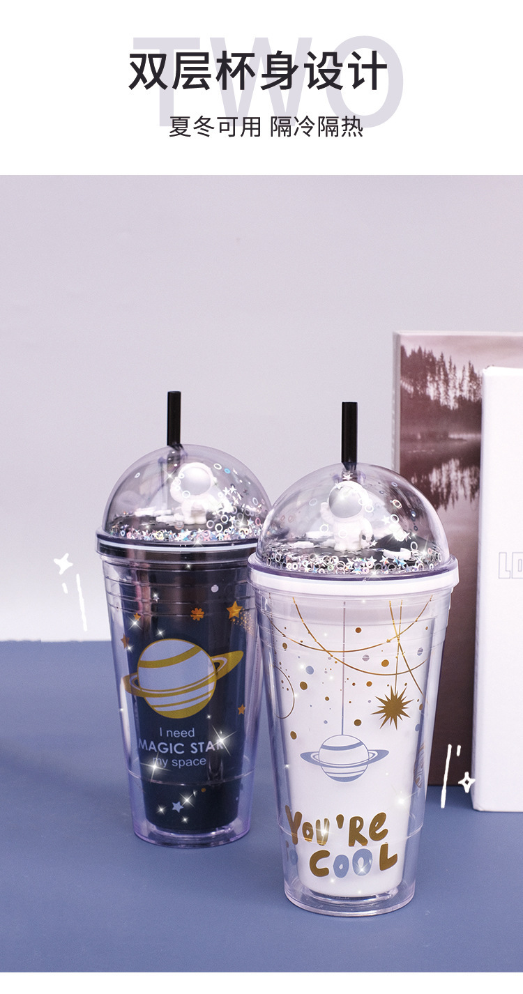 定制塑料杯儿童水杯网红可爱杯子太空吸管杯创意广告礼品