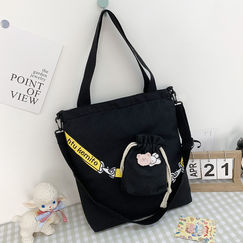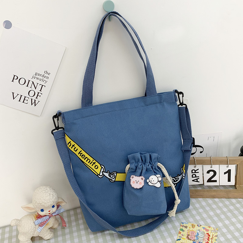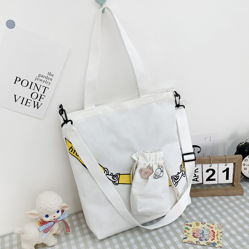 2022春季新款帆布包女日韩托特包女式时尚手提布包链条抽绳口袋