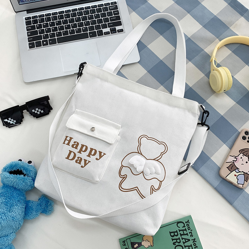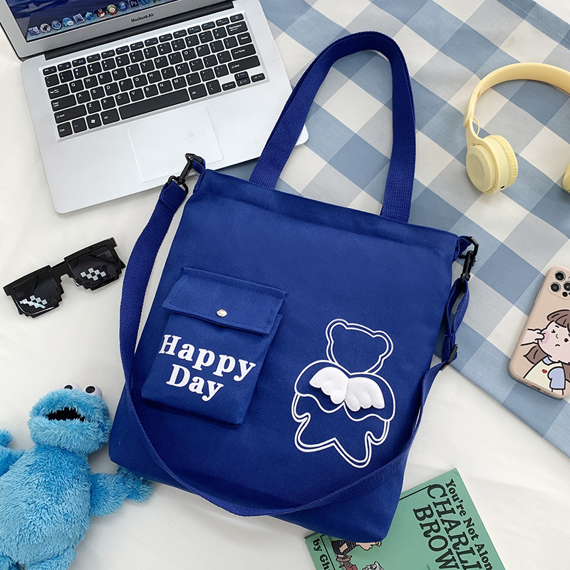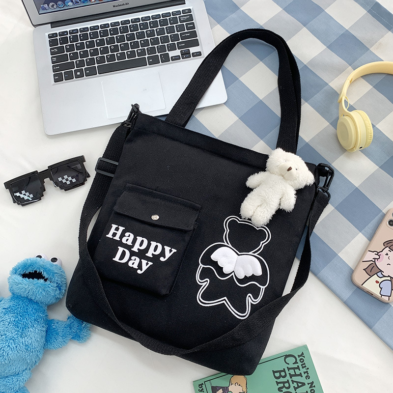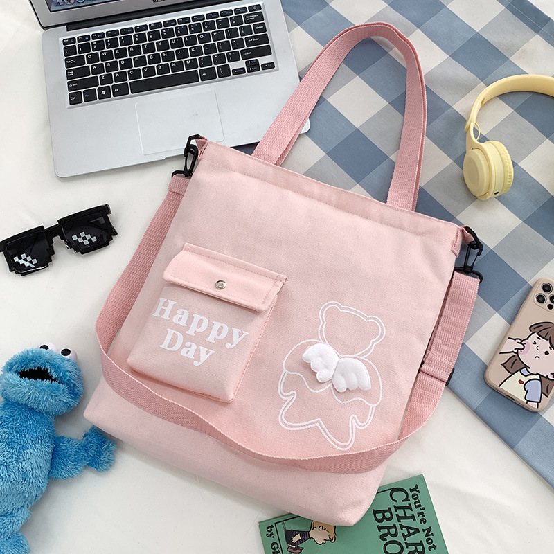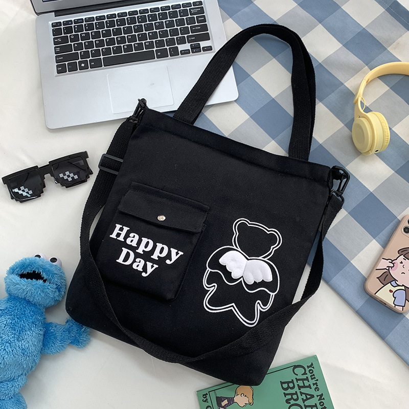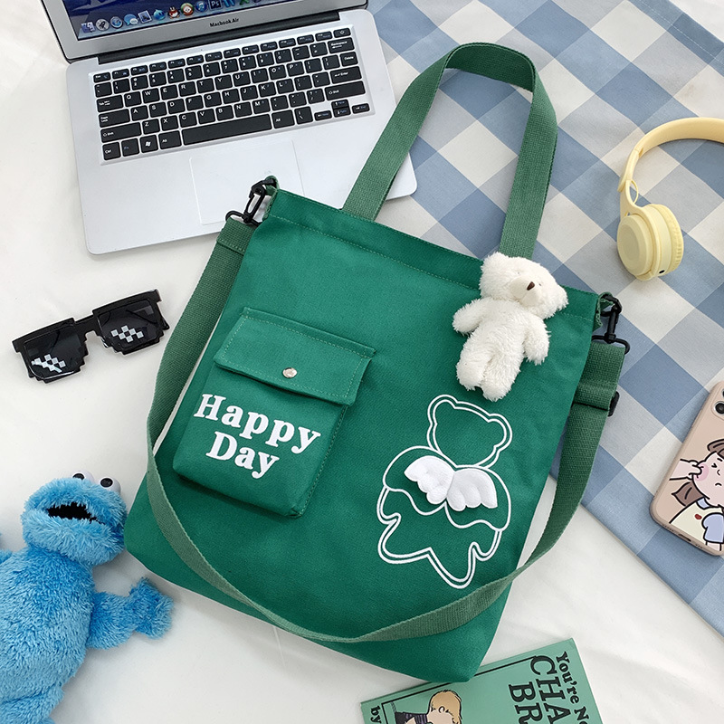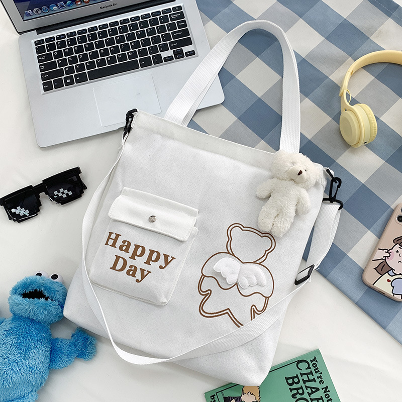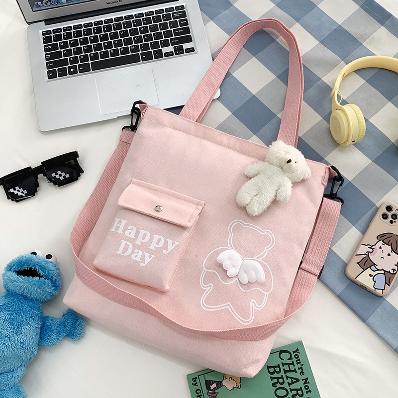 春季款帆布包手提单肩包大容量学生帆布托特包时尚潮流天使熊女包