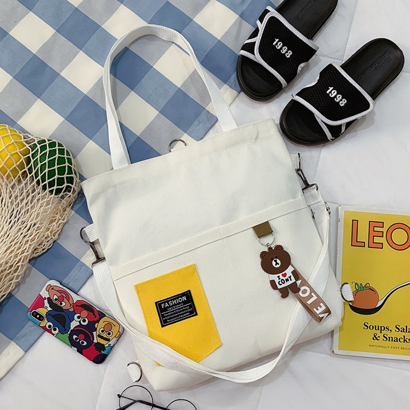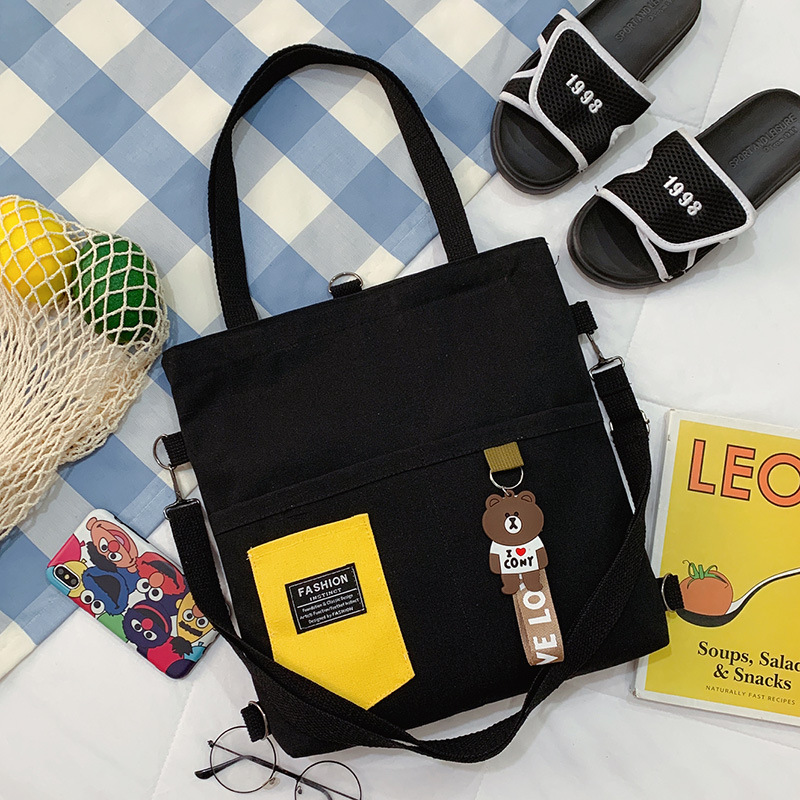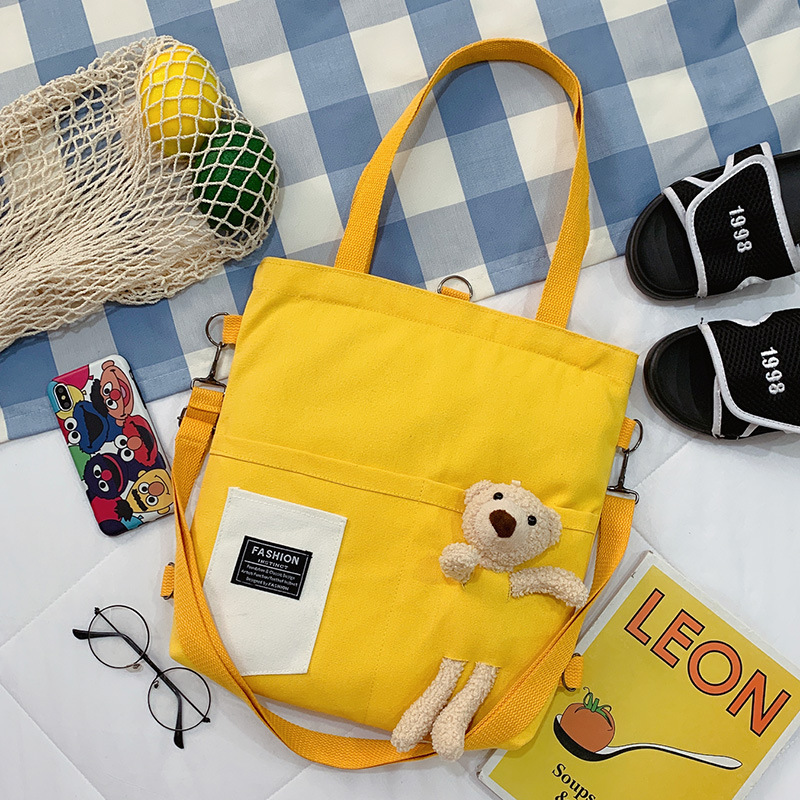 厂家直销肩女士斜挎包卡通可爱大容量手提包多用小熊款帆布学生包