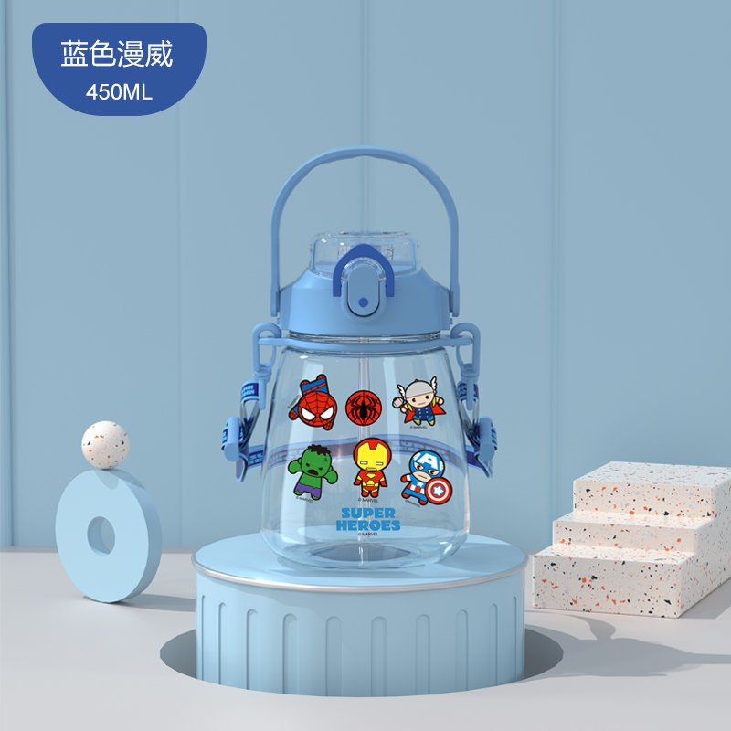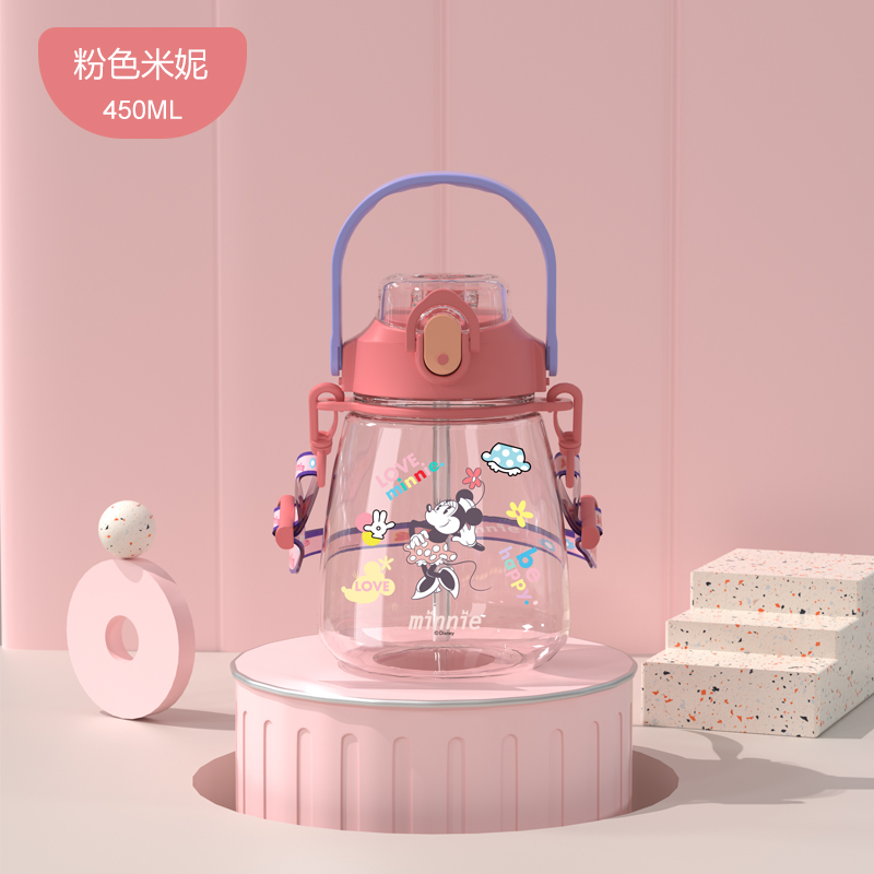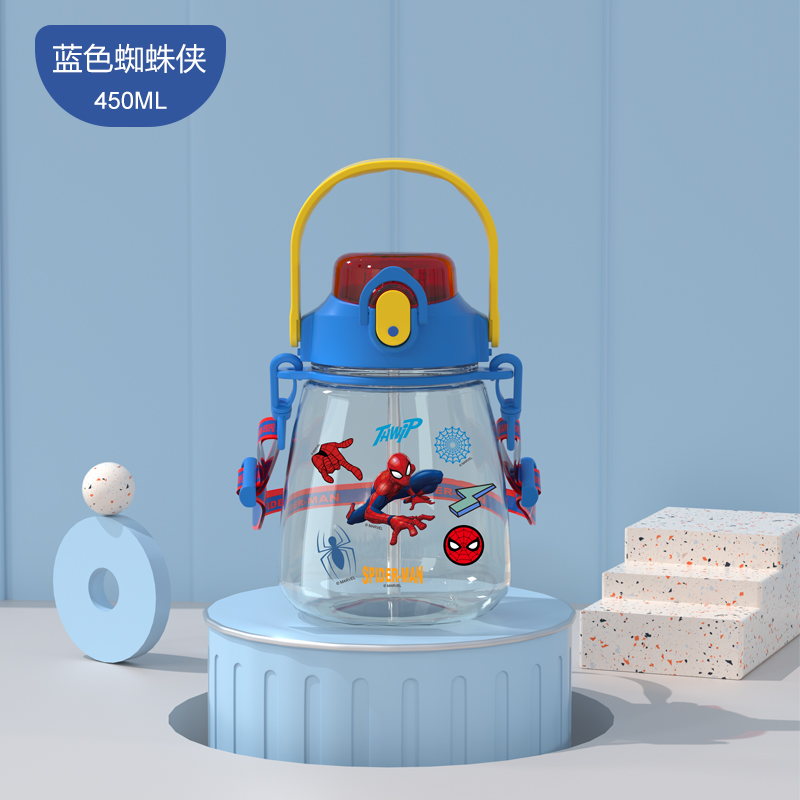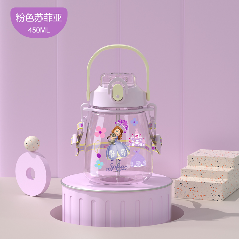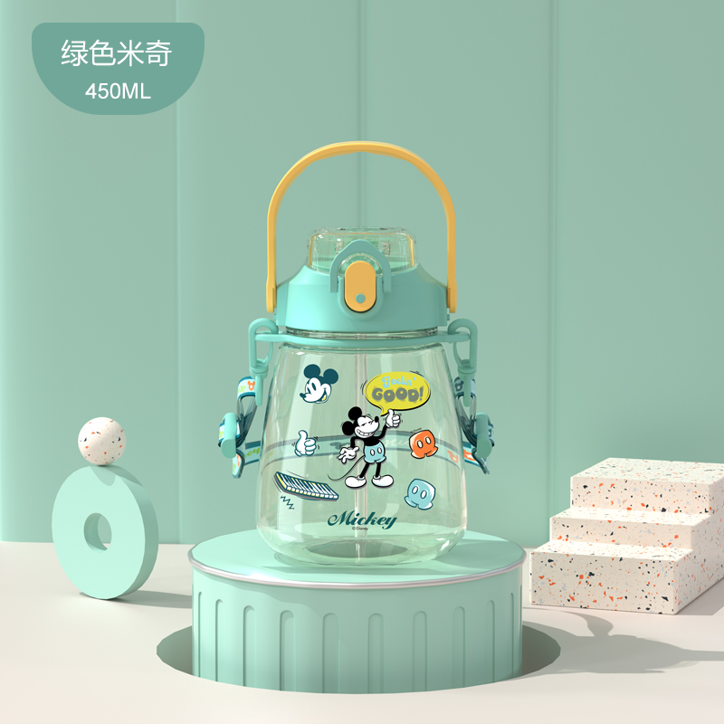 正品迪士尼儿童水杯450ML 贴纸幼儿园小学生吸管大肚杯便携水壶