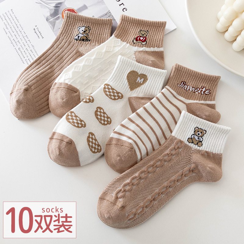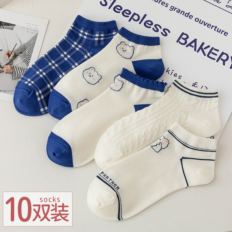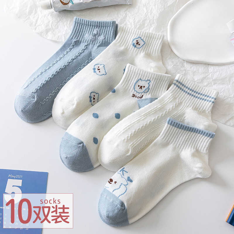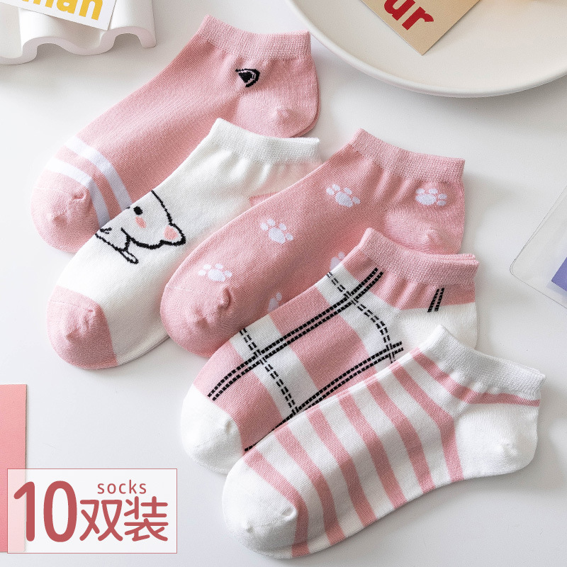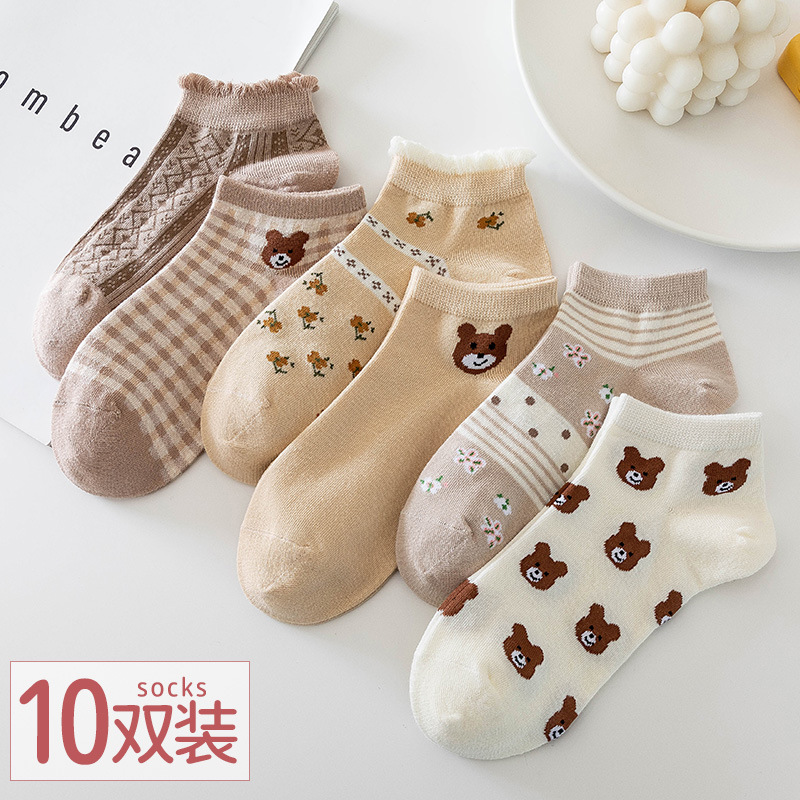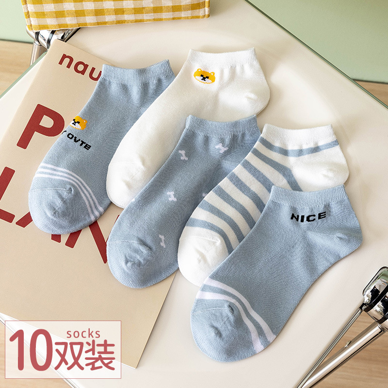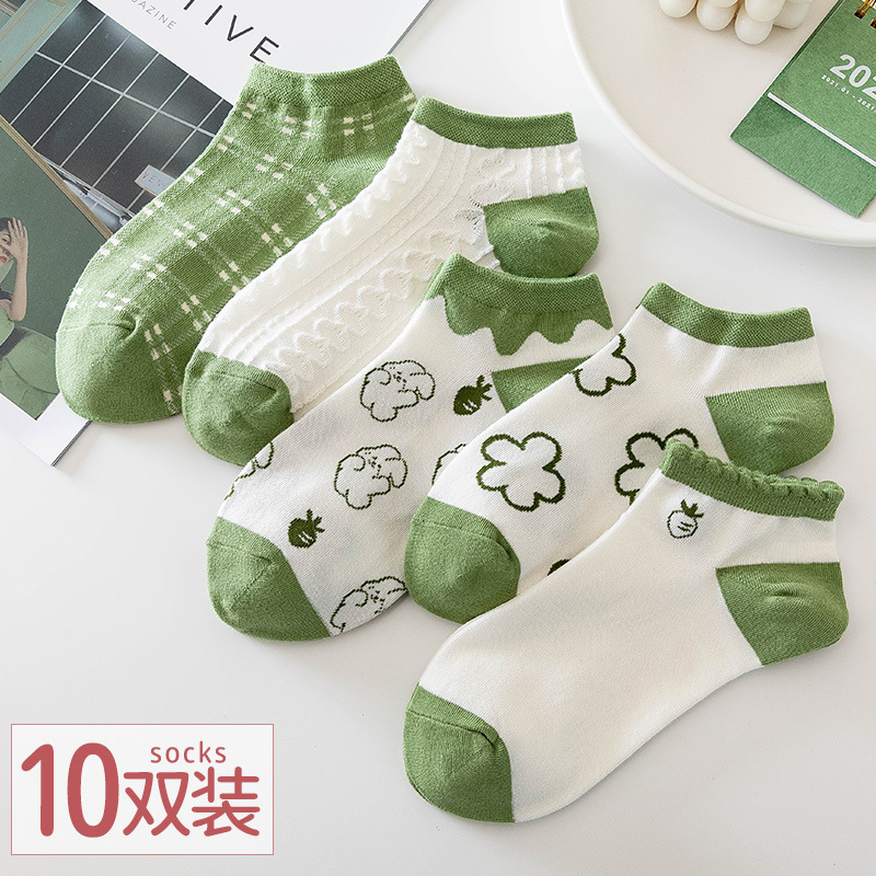 绿色袜子女短袜涤棉日系简约纯色浅口提花潮ins条纹薄款春夏船袜