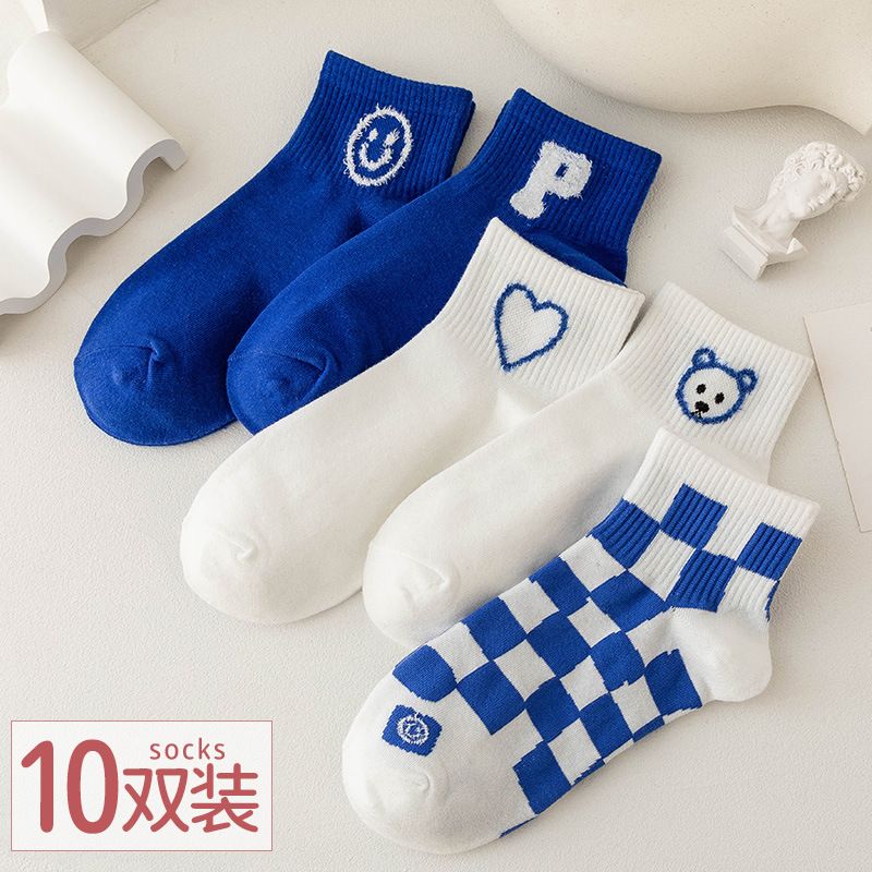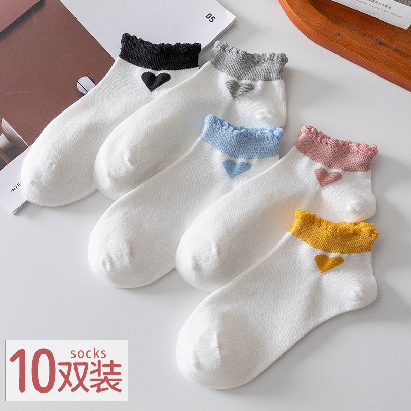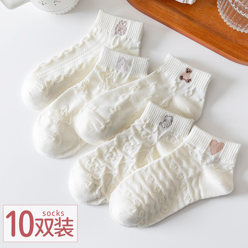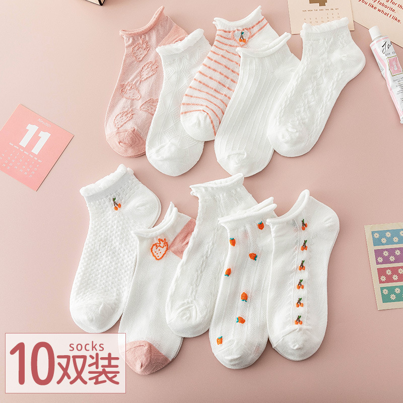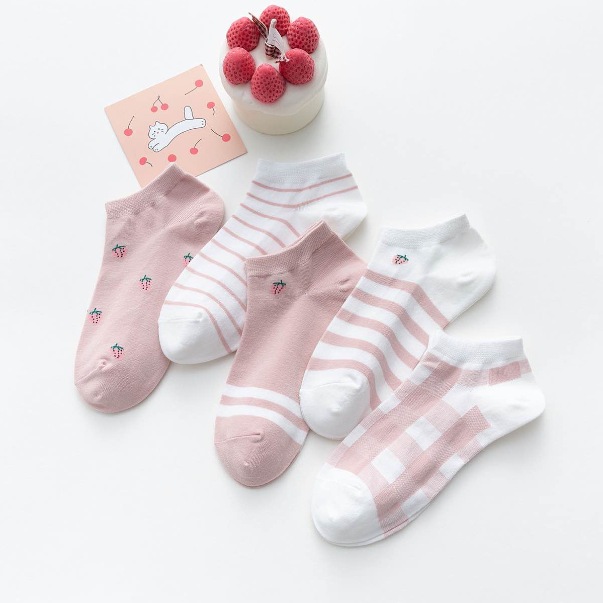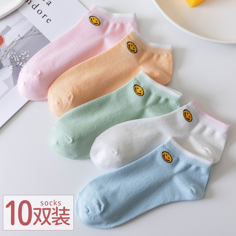 绿色袜子女短袜涤棉日系简约纯色浅口提花潮ins条纹薄款春夏船袜