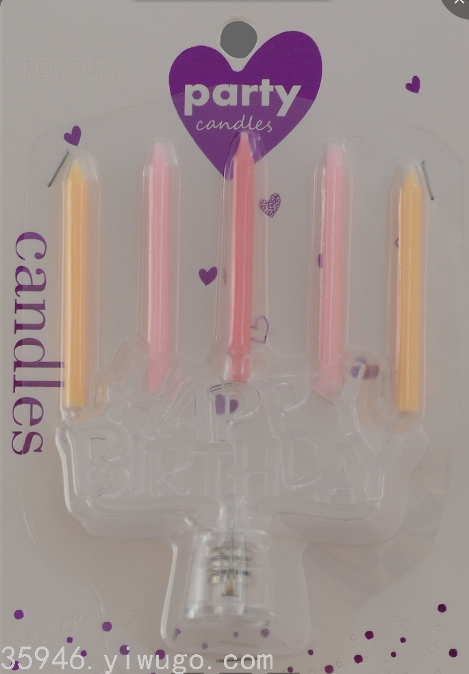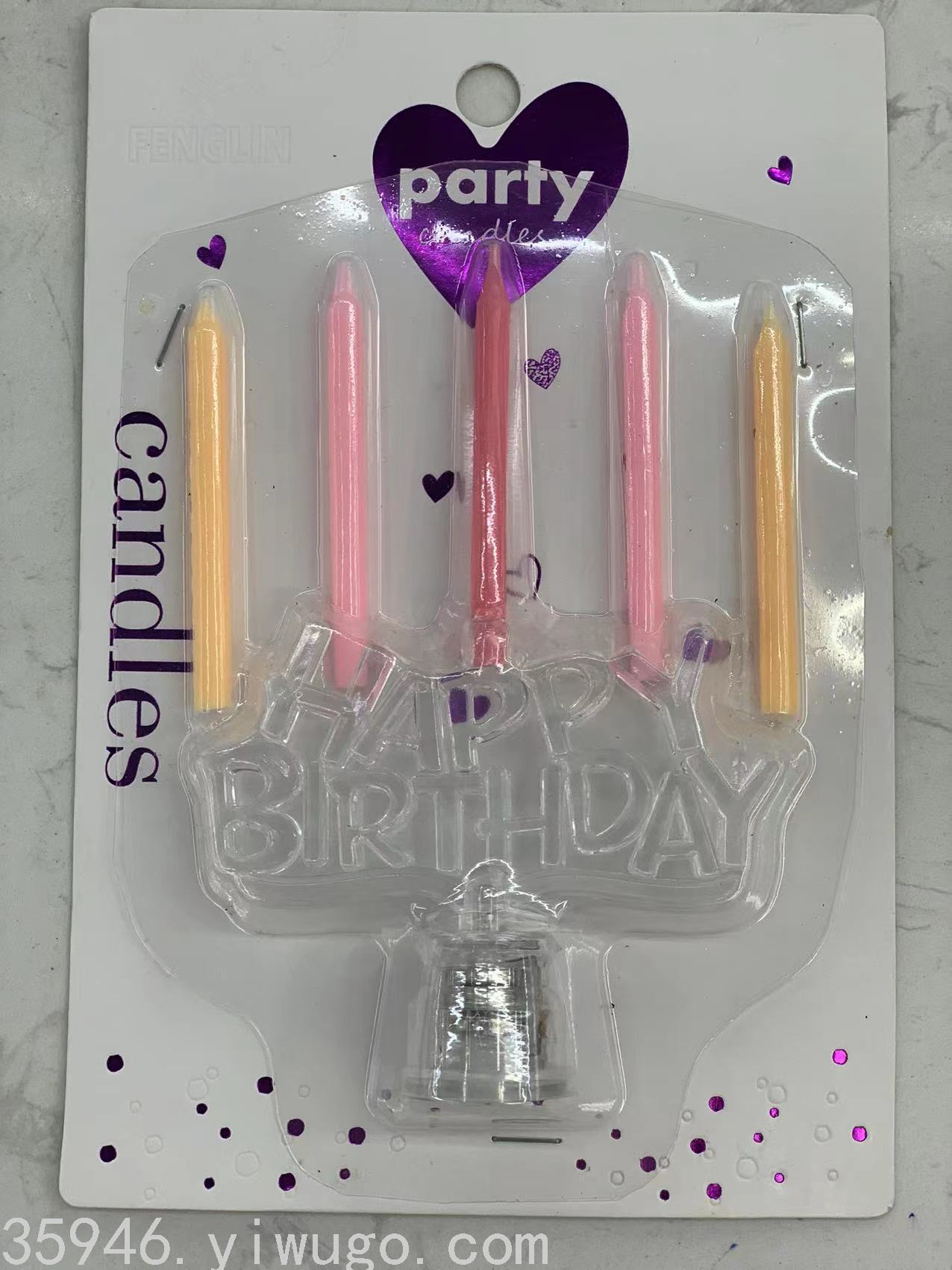 枫林蜡烛马卡龙HP女孩电子透明塑料烛台+5根杆蜡(小号)