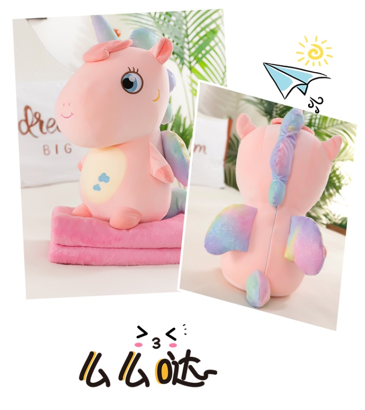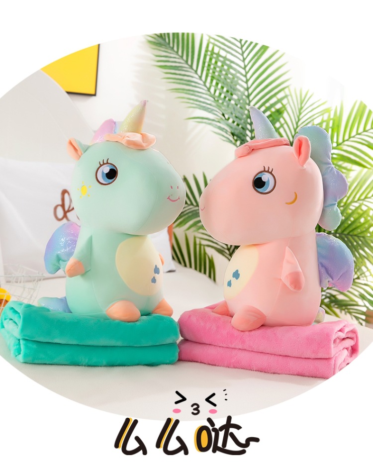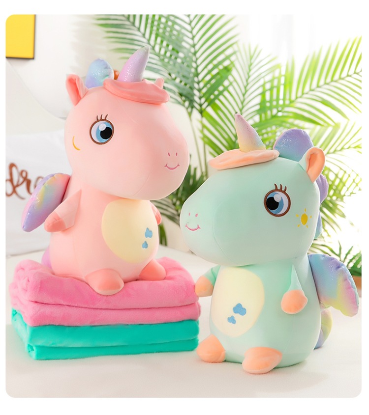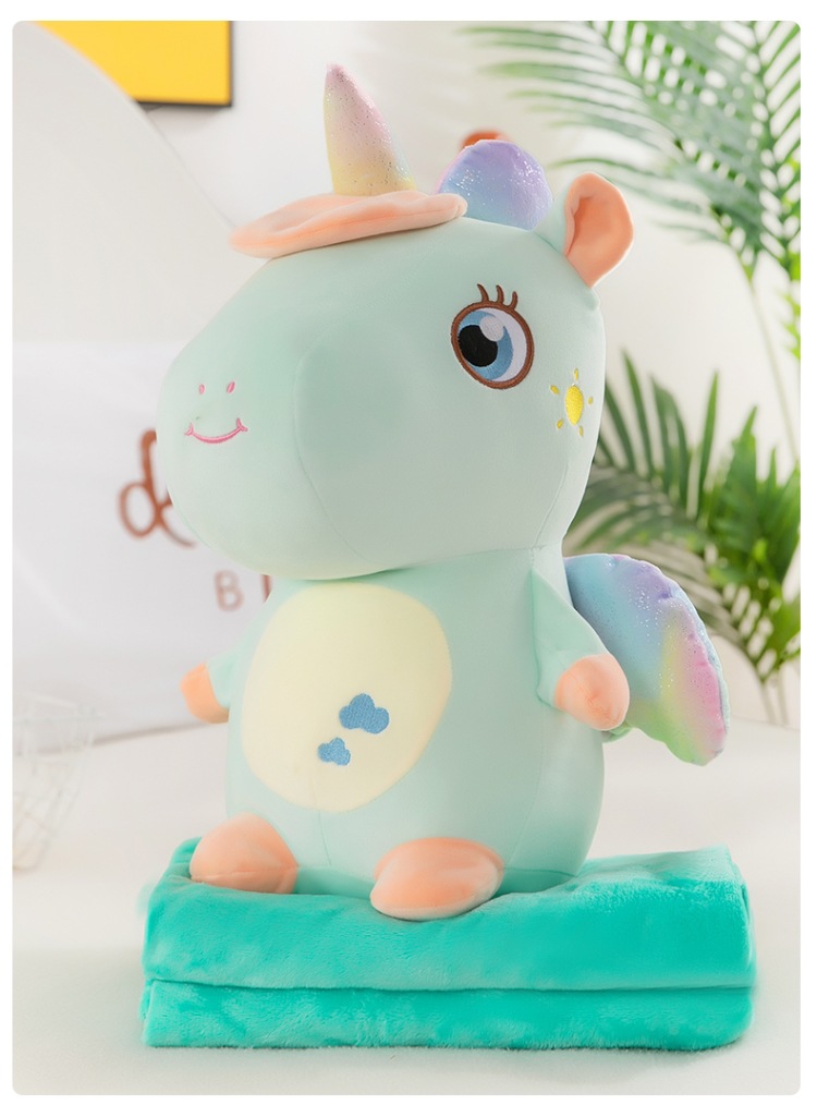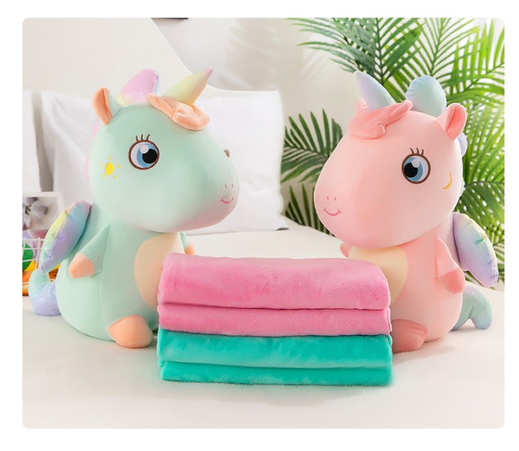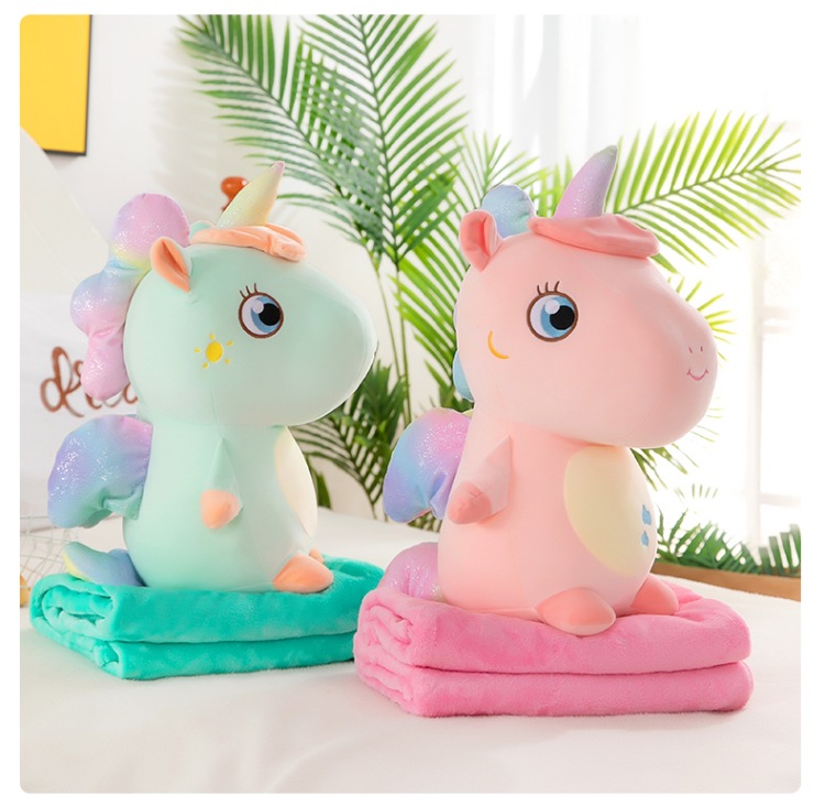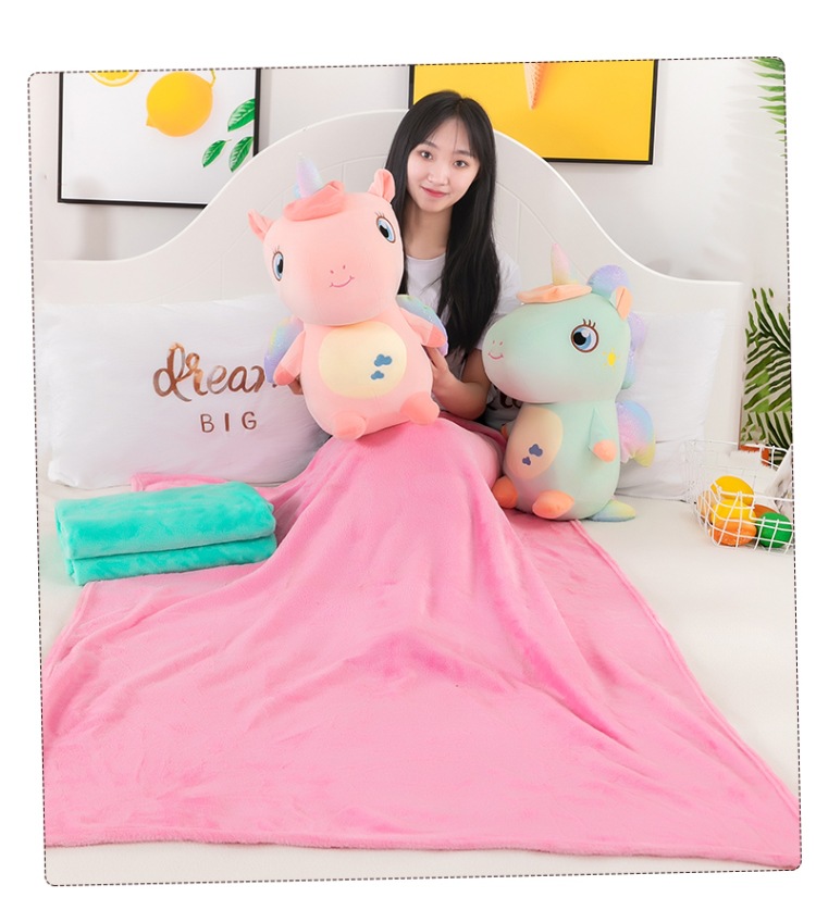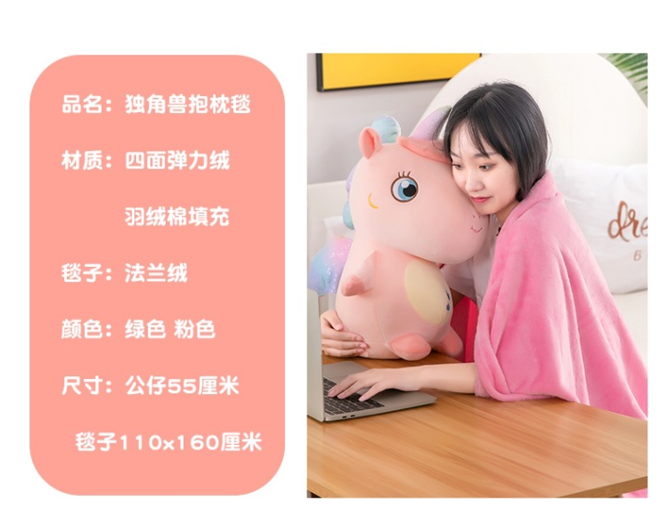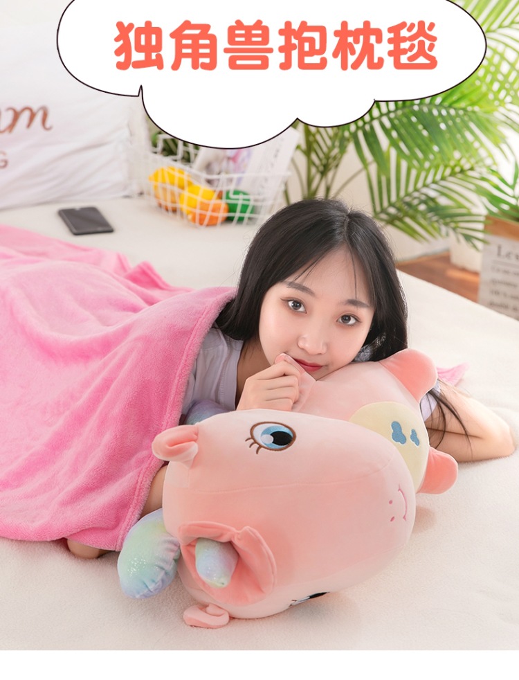 站版独角兽空调被毛绒玩具可爱布娃娃办公室午休枕抱枕毯毛绒玩具