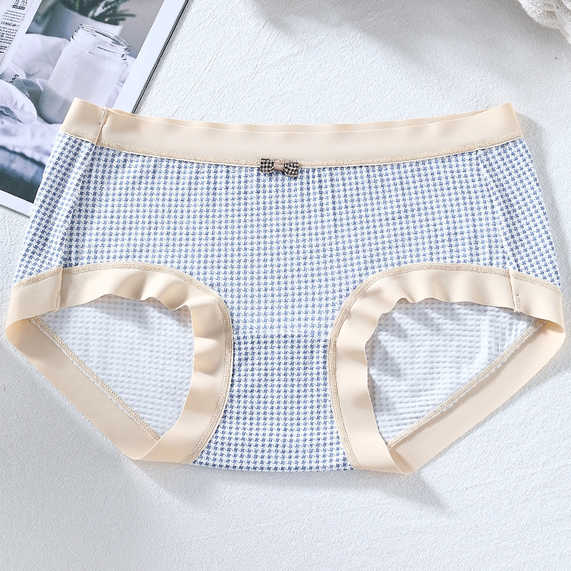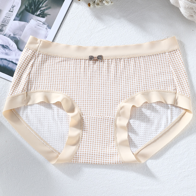 大码莫代尔内裤女 200斤桑蚕丝裆千鸟格印花中腰少女无痕