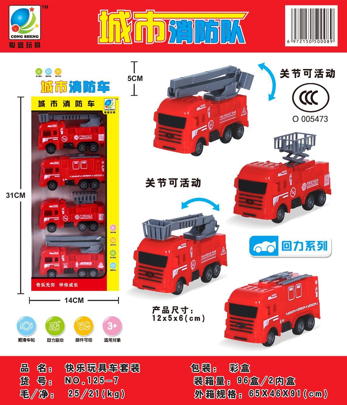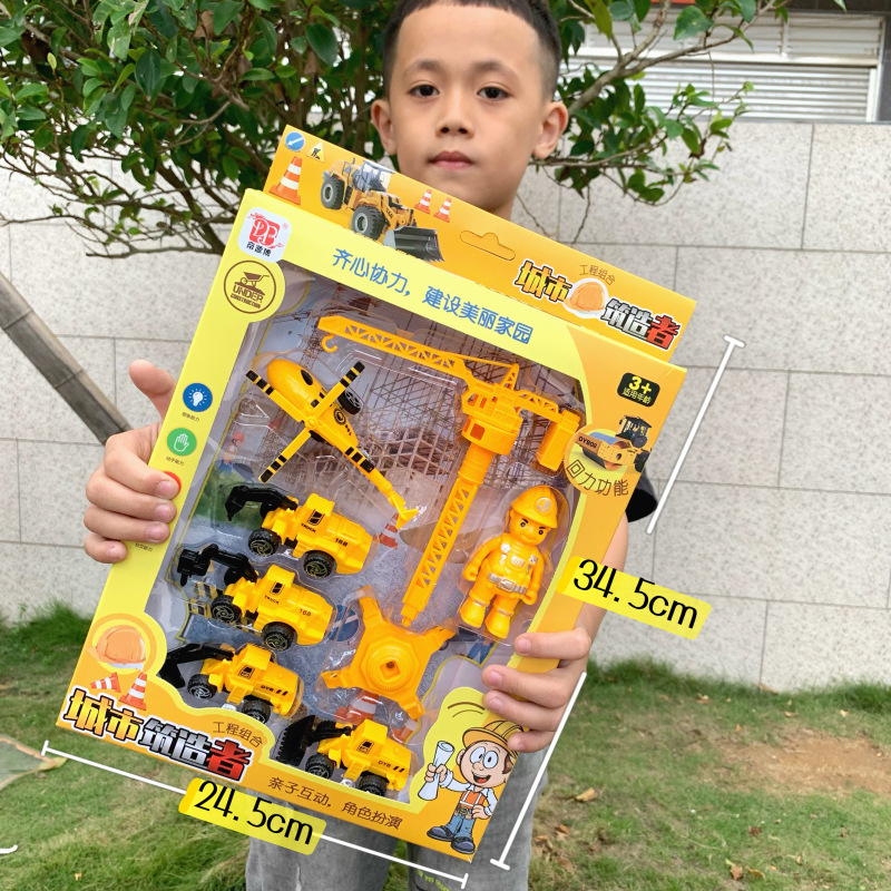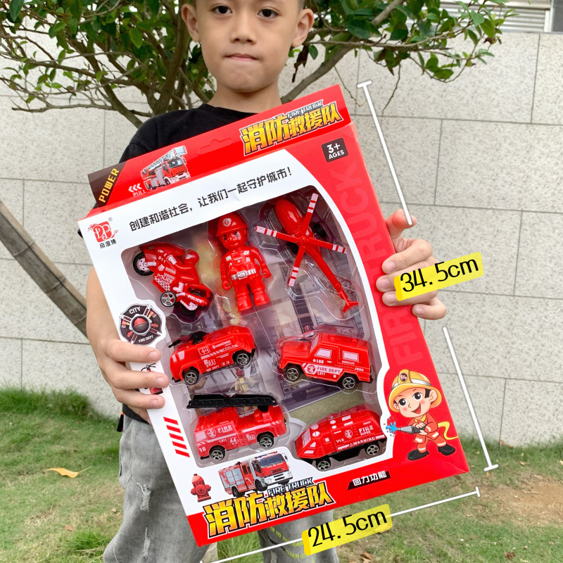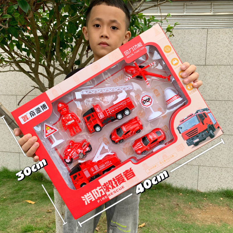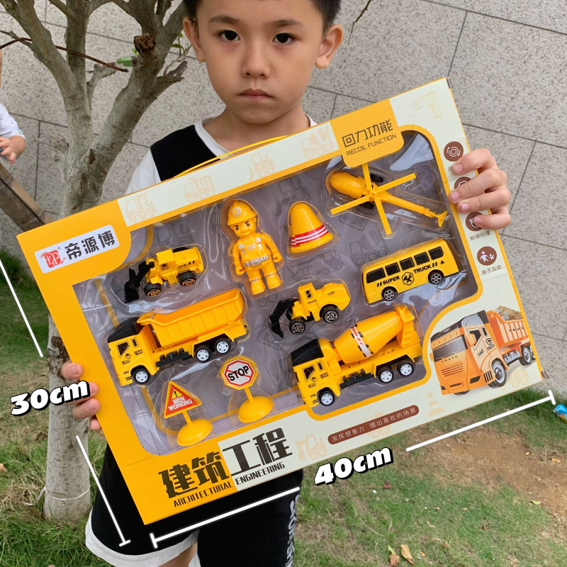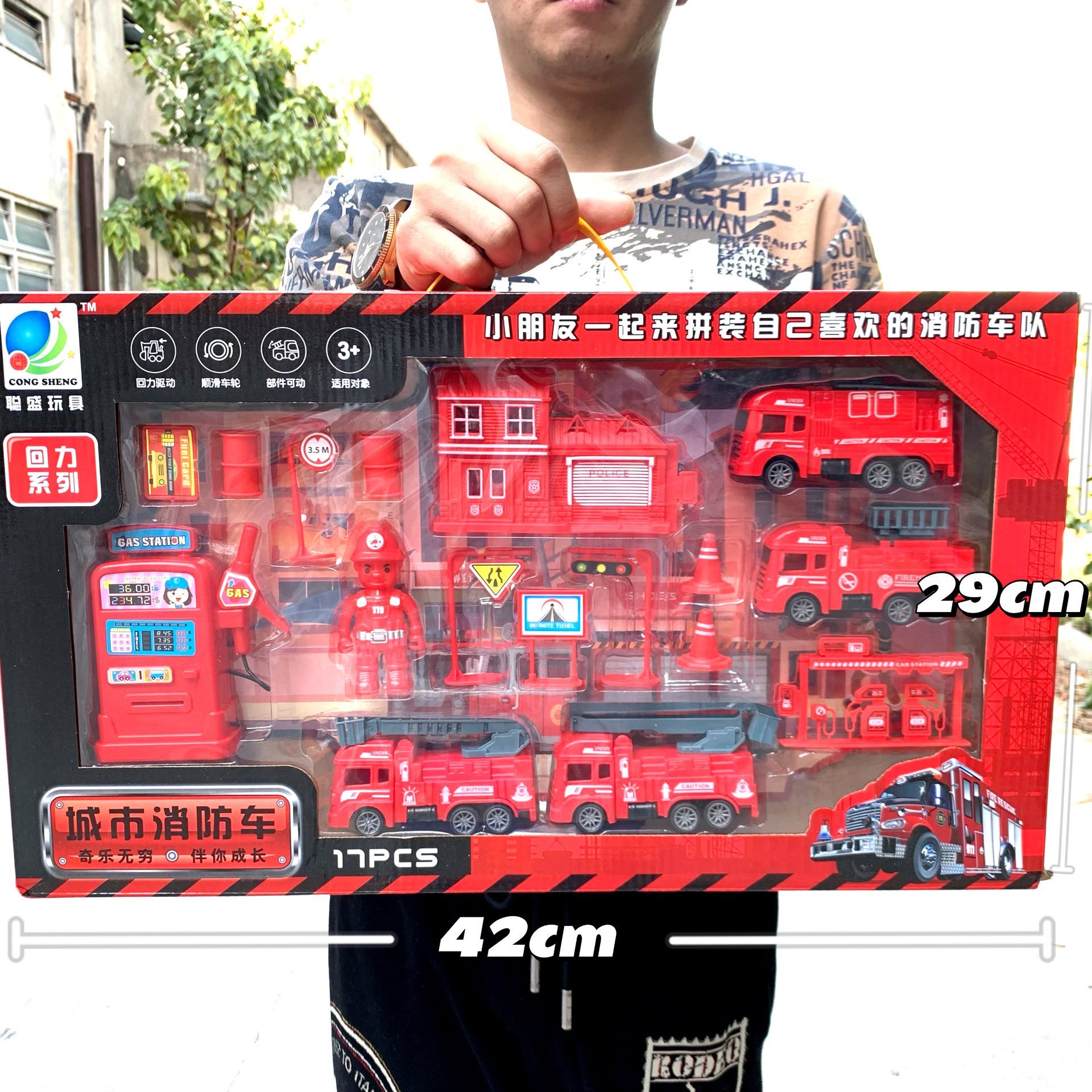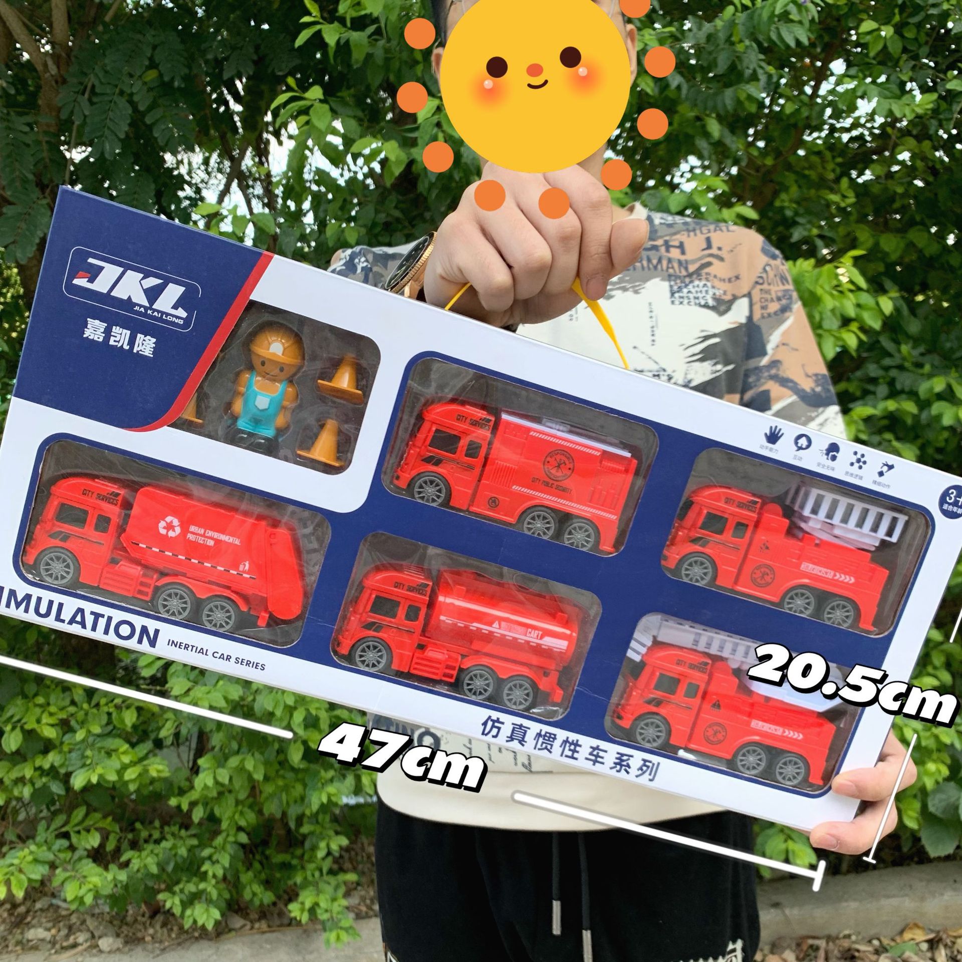 玩具工程车消防车模型仿真惯性回力车套装挖掘机推土车男孩玩具