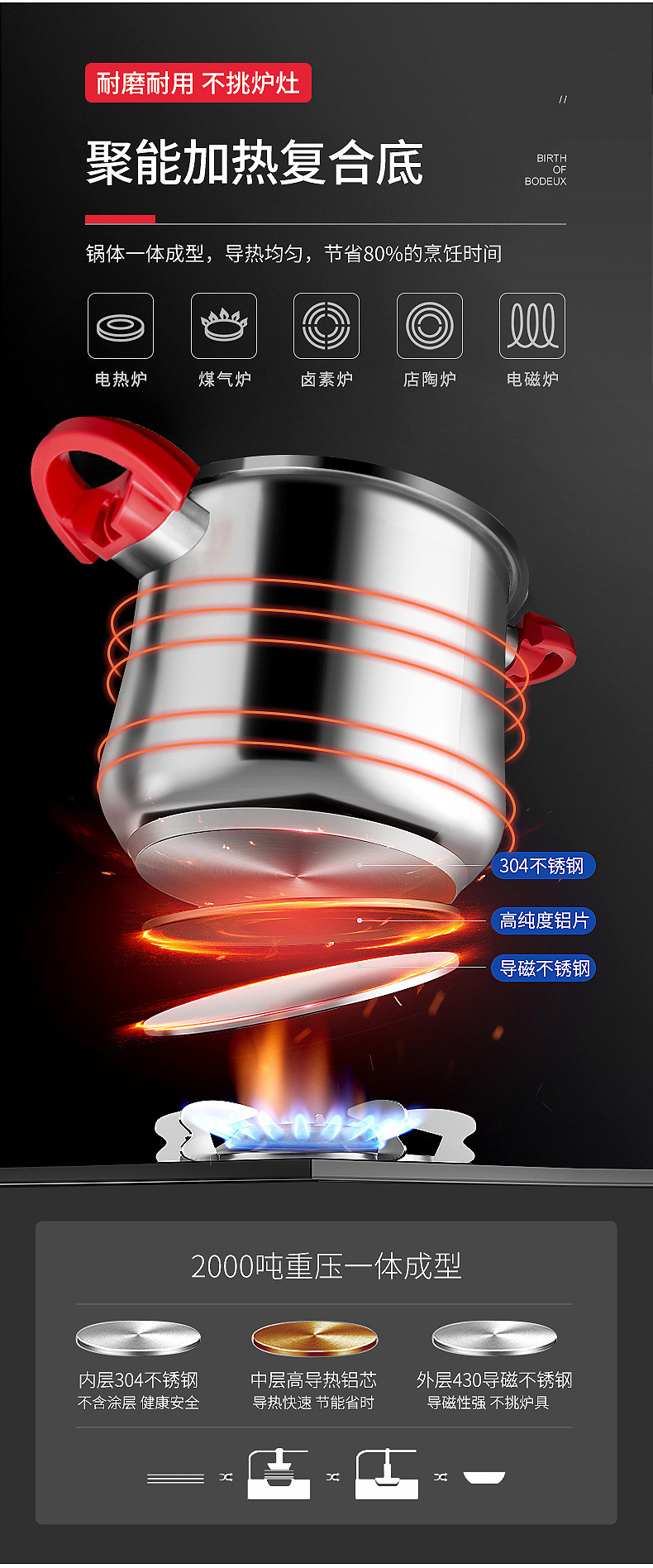 外贸出口高压锅家用加厚防爆304不锈钢压力锅燃电磁炉通用快压锅