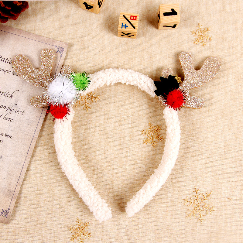 2025跨境热卖新款头扣 麋鹿毛绒彩色可爱女毛粘球发箍现货批发