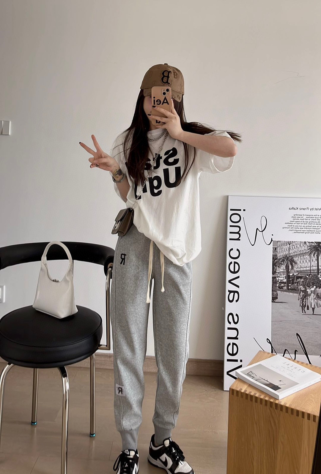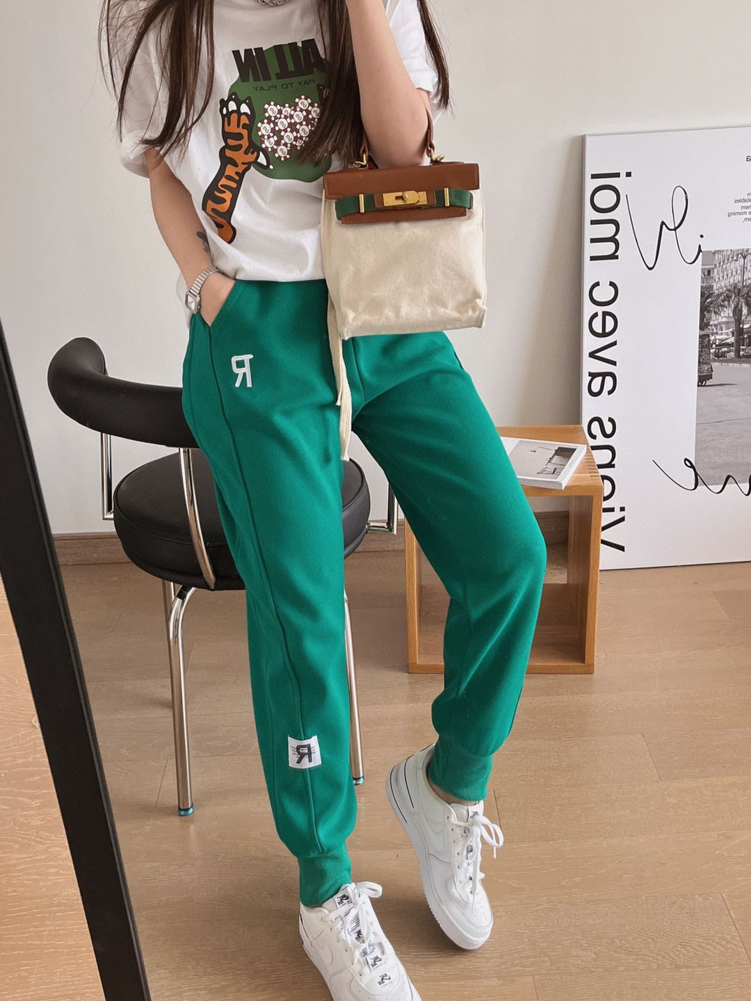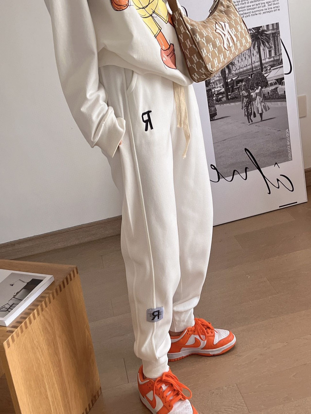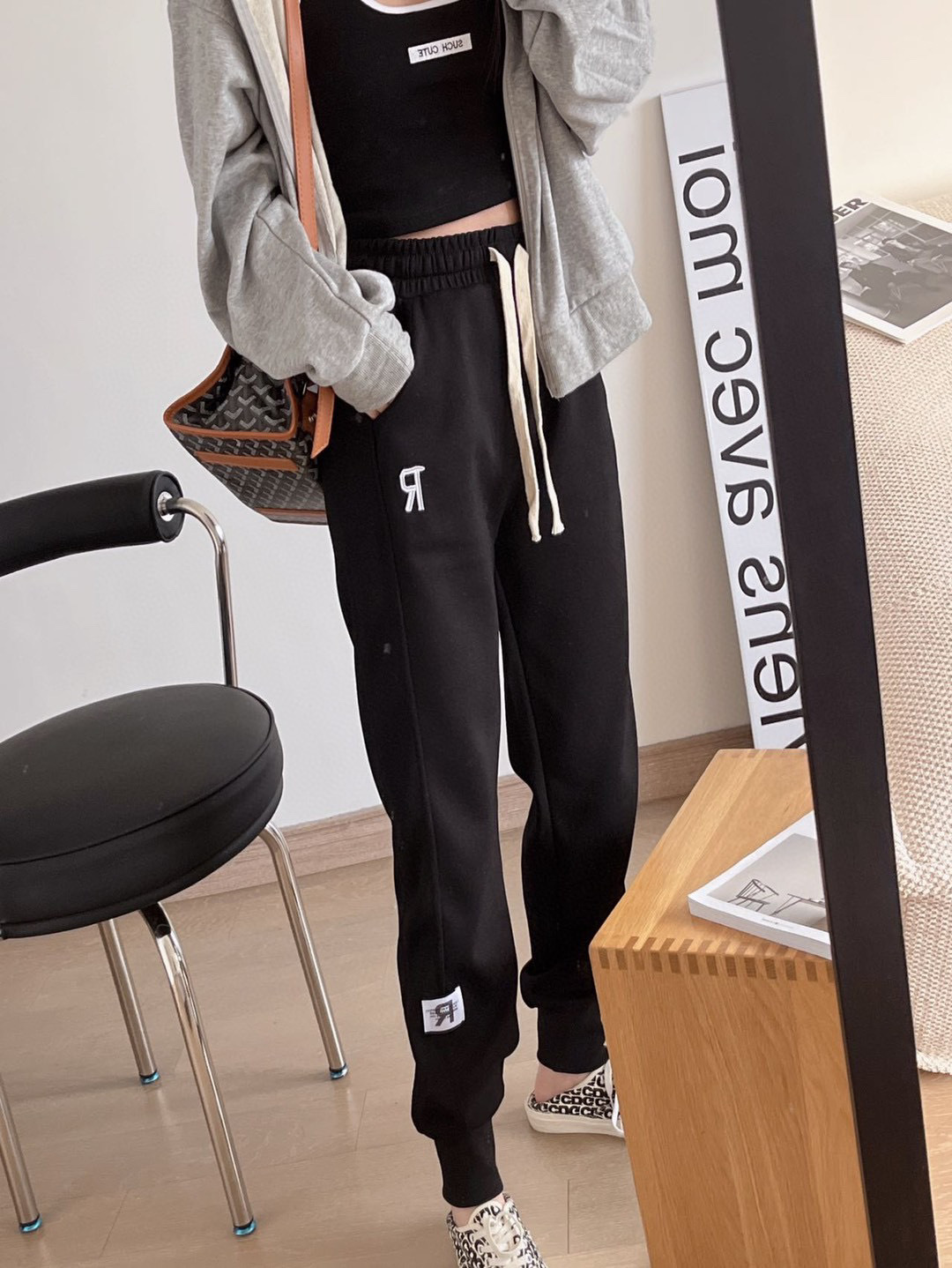 ENYU字母刺绣R标卫裤女2022新款遮肉显瘦慵懒运动休闲束脚裤潮ins
