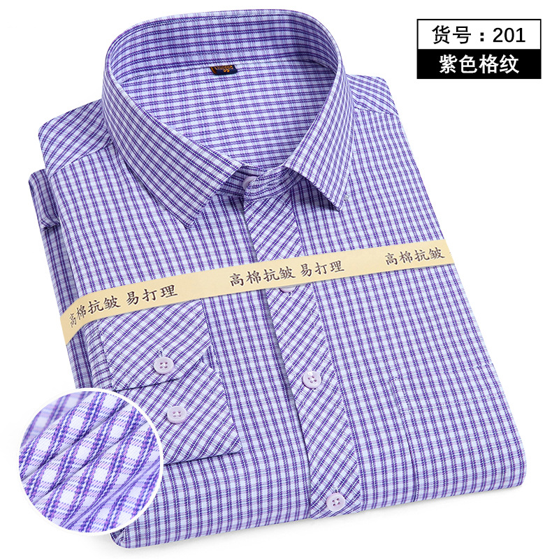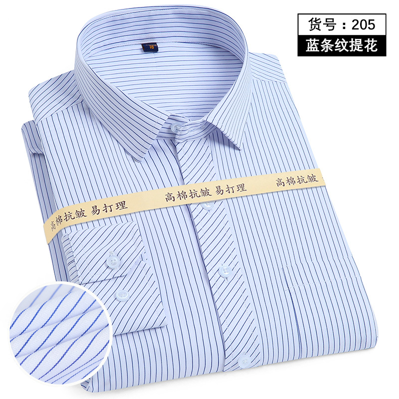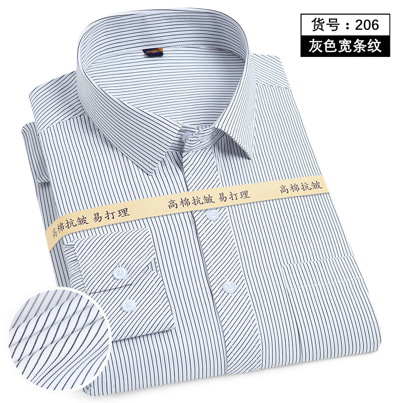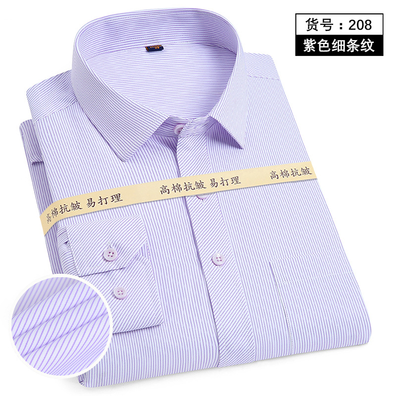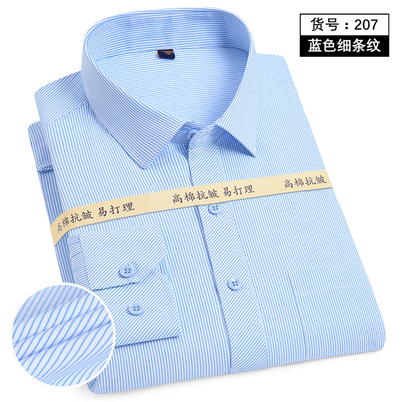 春季新款男士商务条纹长袖衬衫休闲舒适透气中年爸爸装宽松衬衣