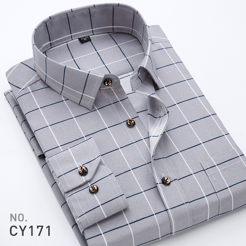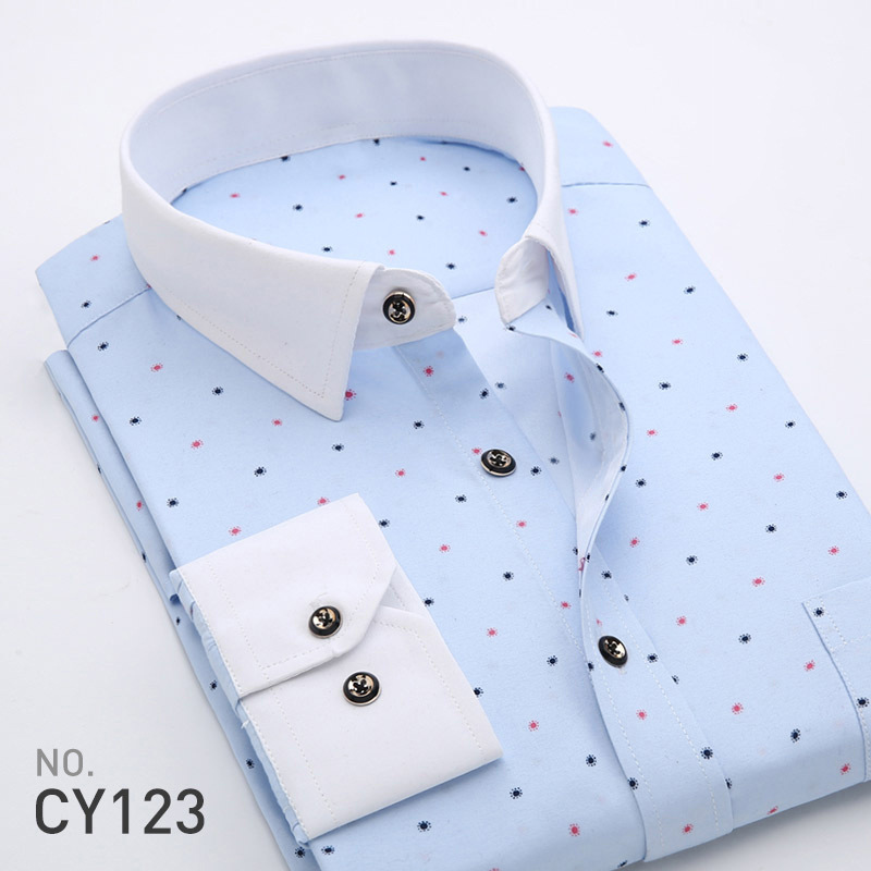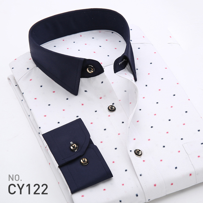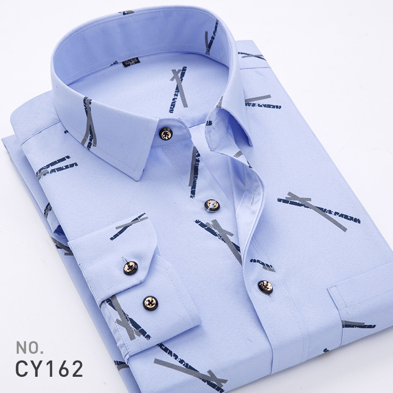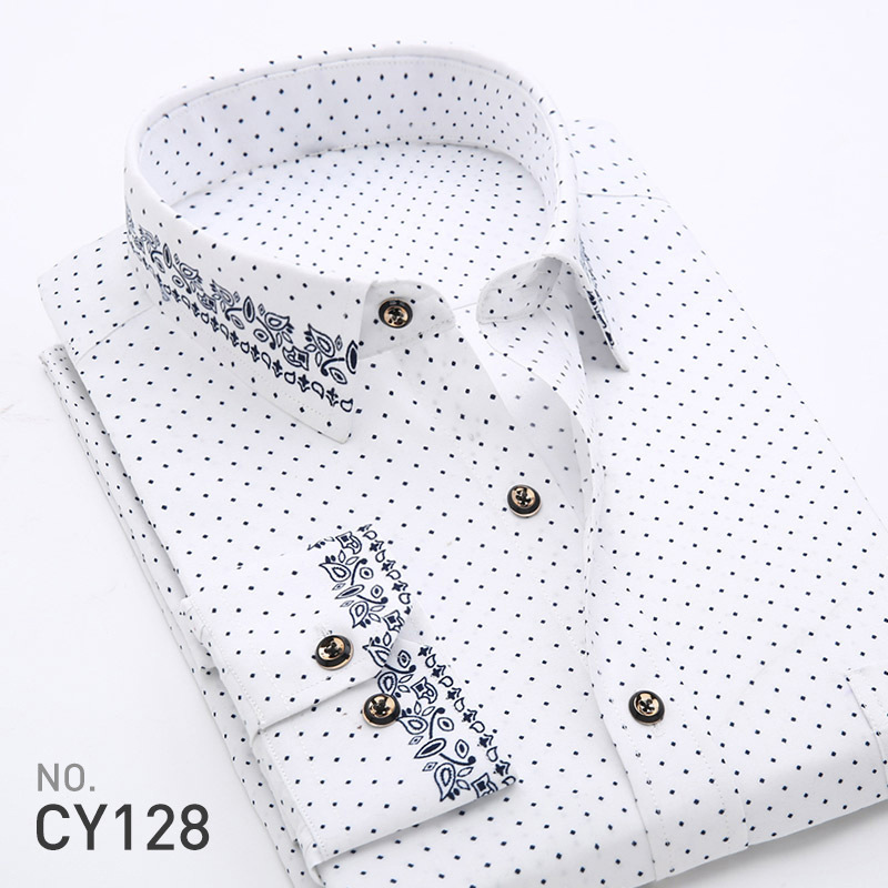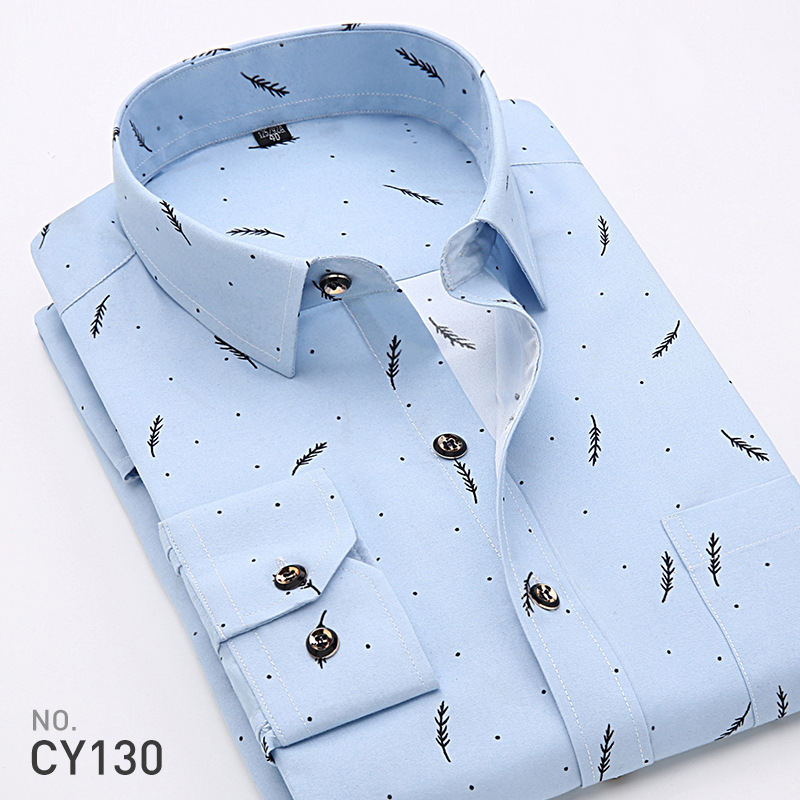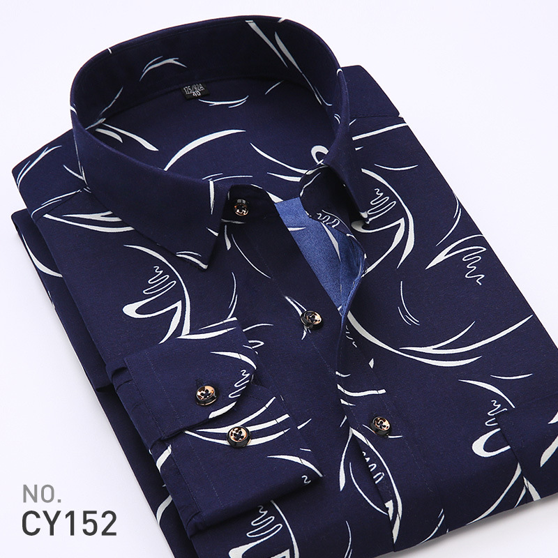 新款男式印花长袖衬衫韩版修身青年格子衬衫休闲时尚碎花衬衣潮