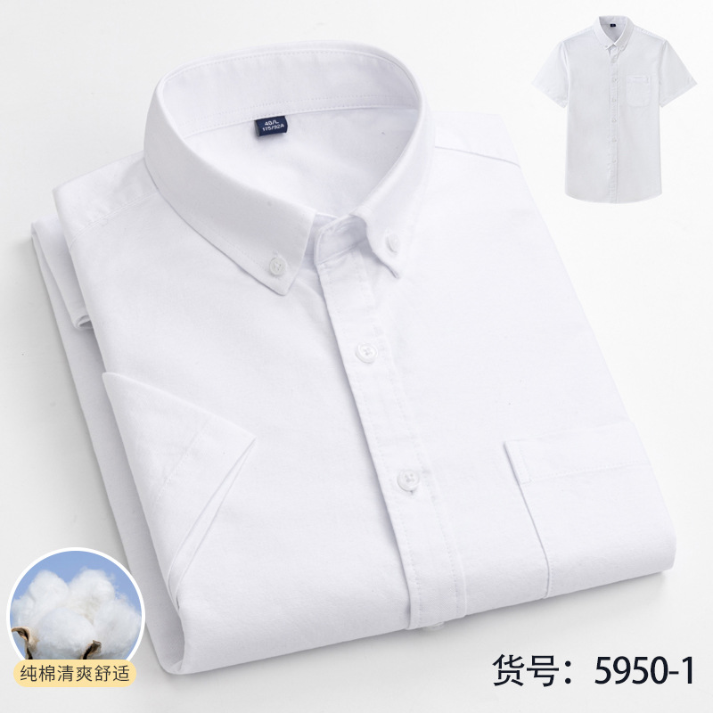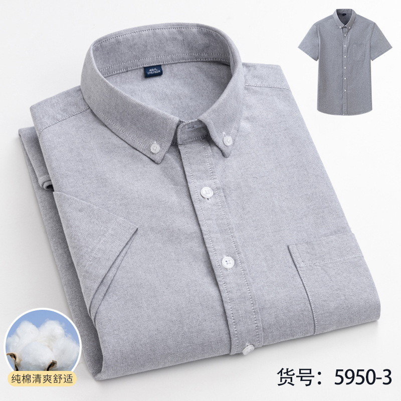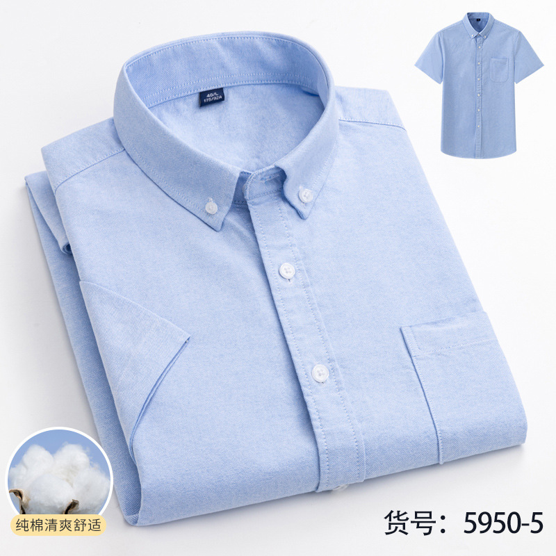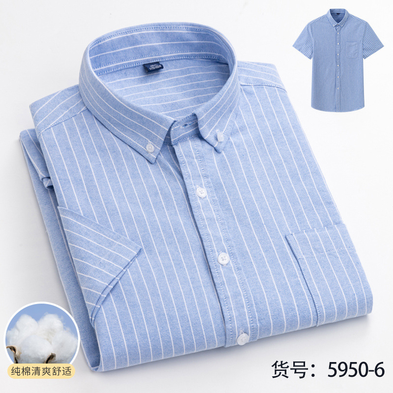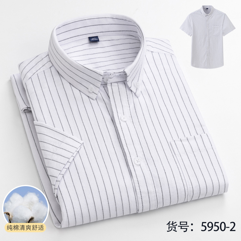 2022夏季新款男士纯棉短袖衬衫纯色牛津纺衬衣免烫透气商务条纹
