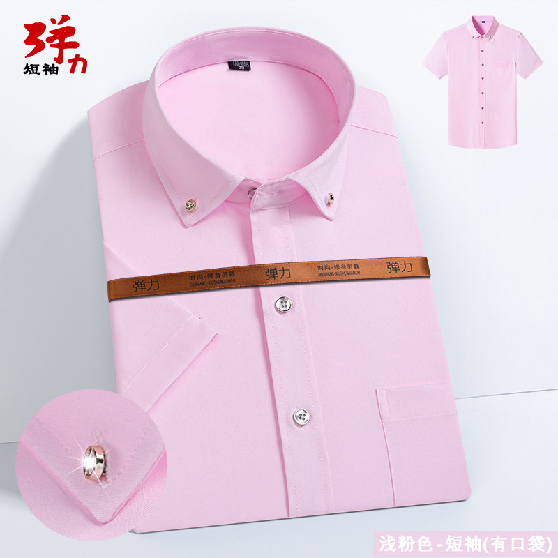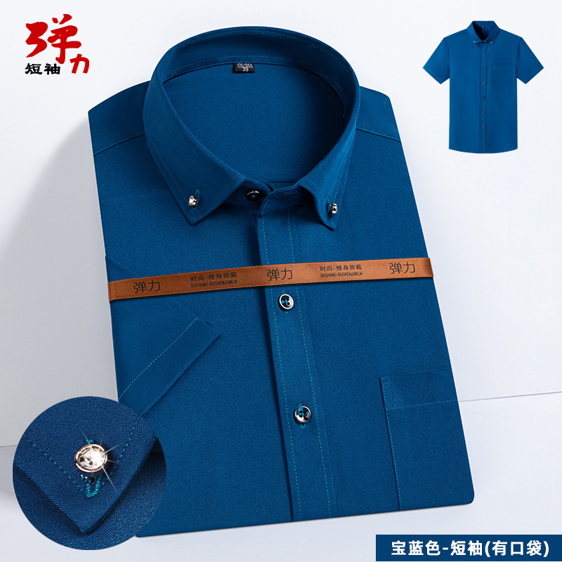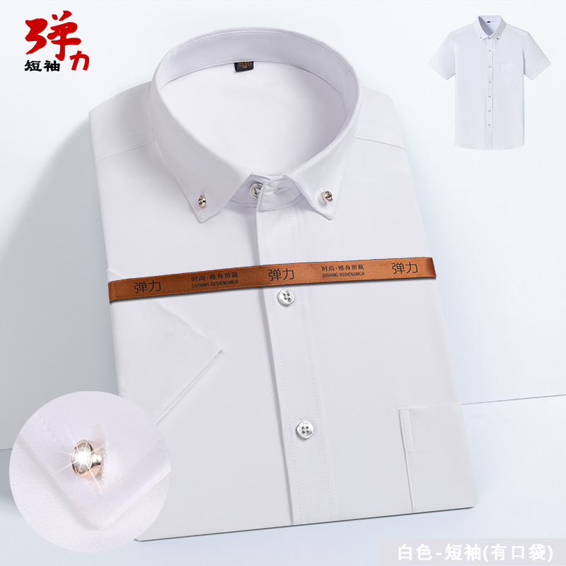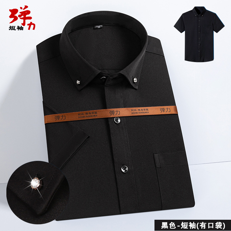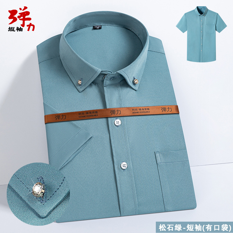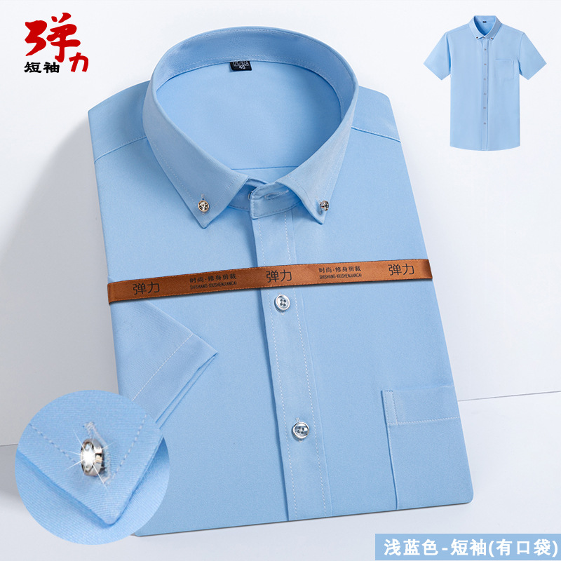 2022新款男士夏季弹力短袖衬衫商务纯色免烫舒适衬衣休闲透气清凉