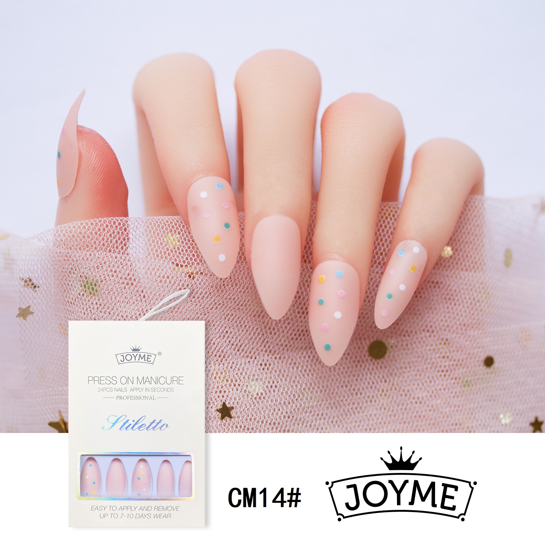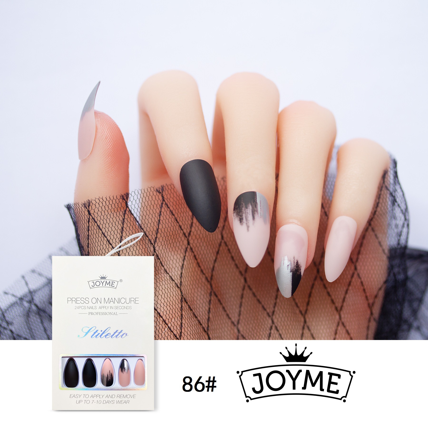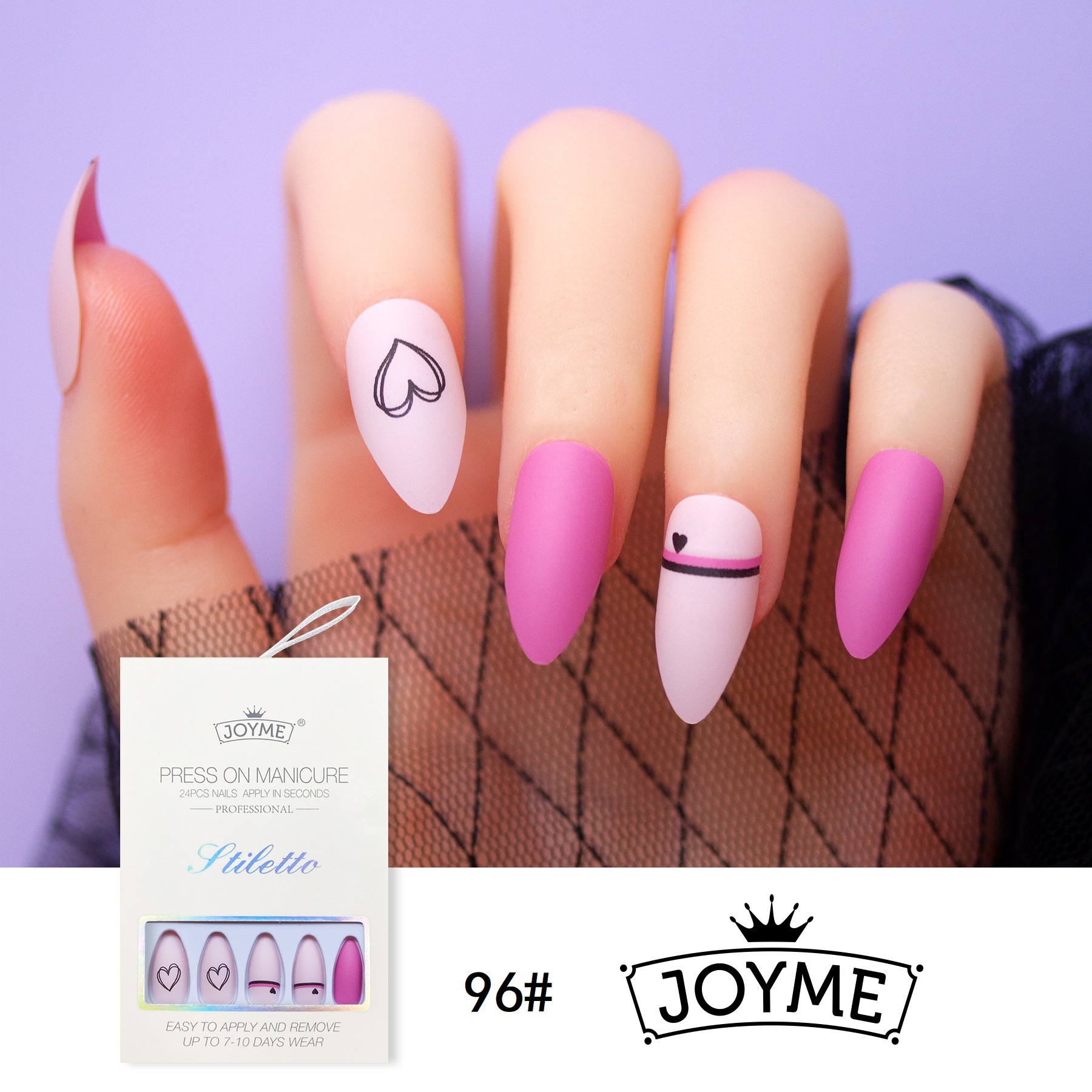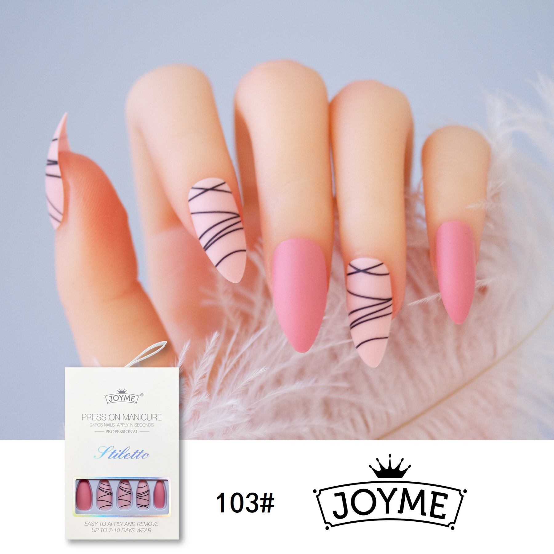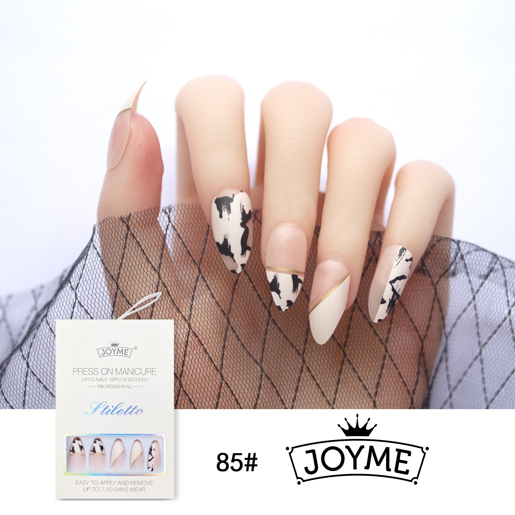 现货跨境热销长尖头水滴甲假指甲贴片美甲片INS24片丝带穿戴美甲