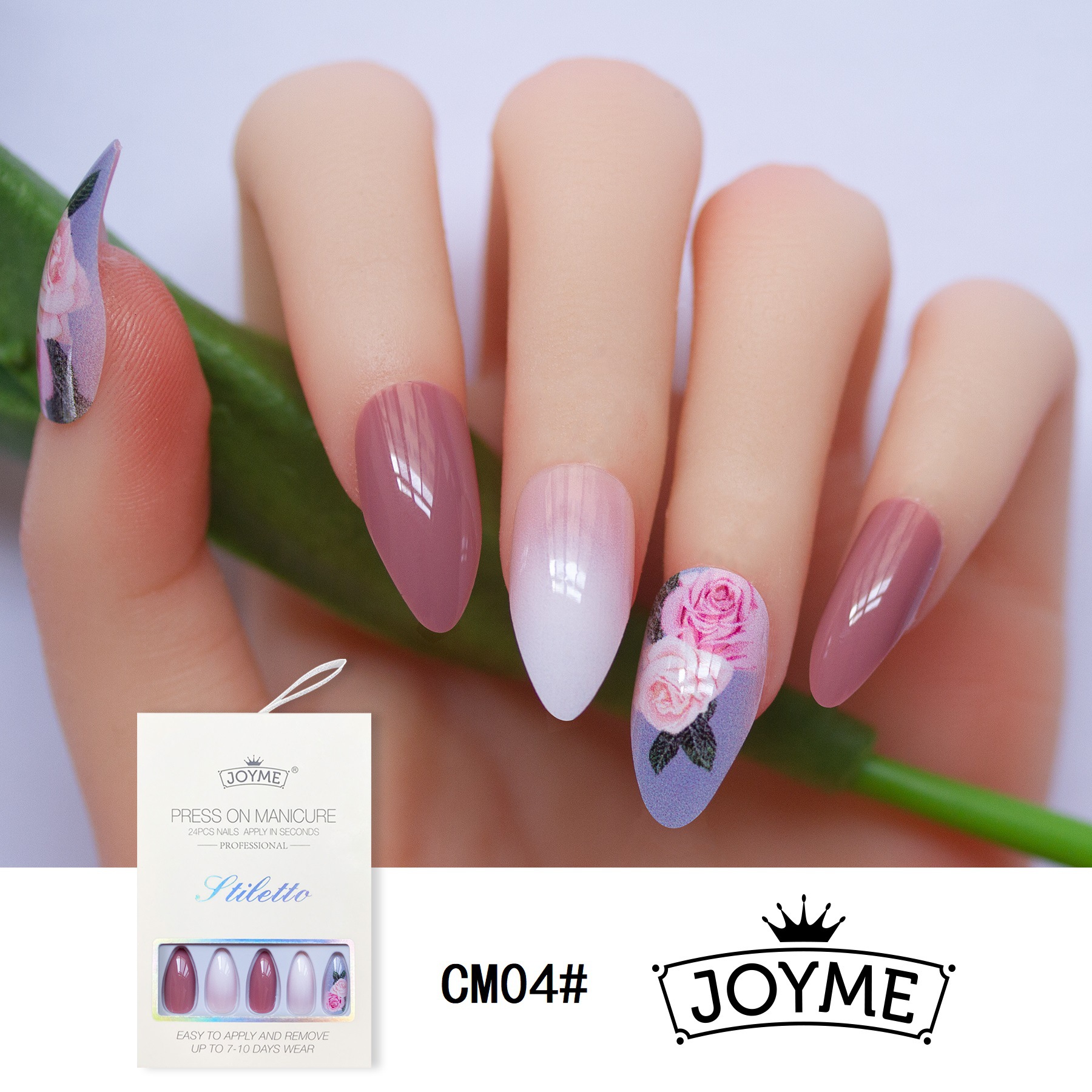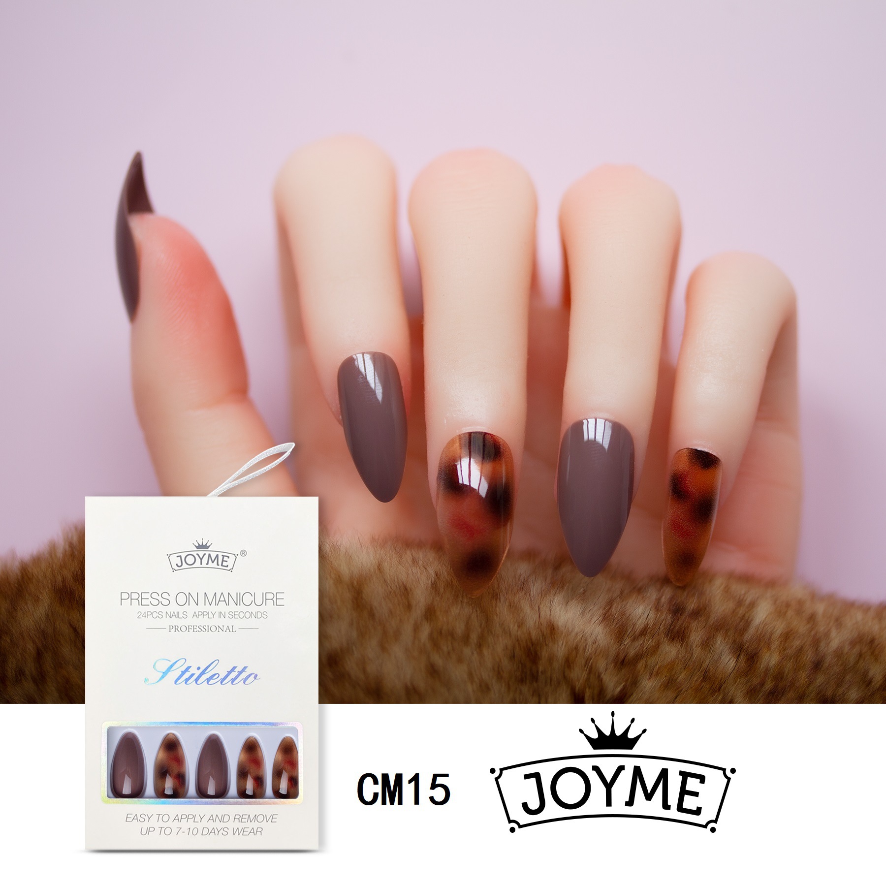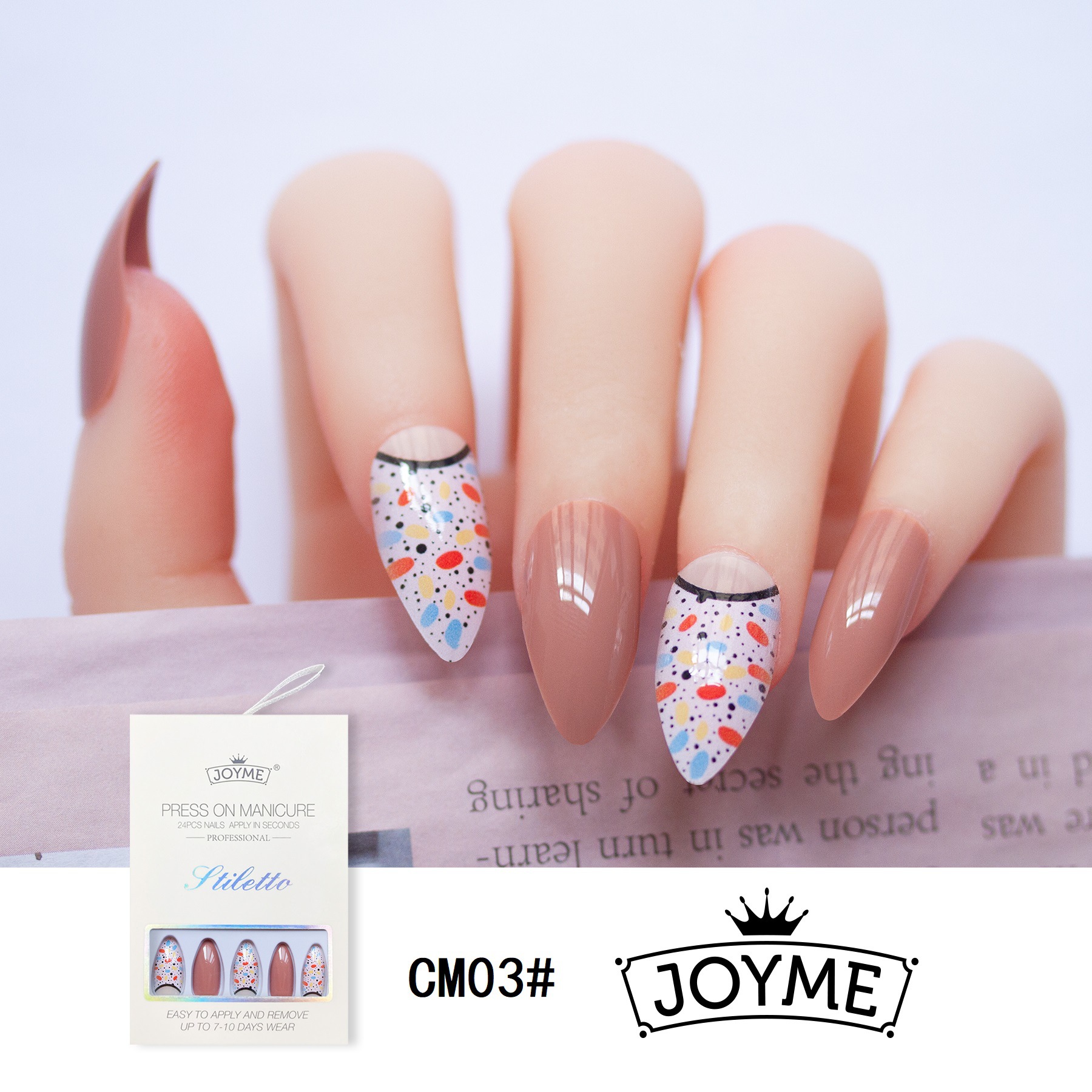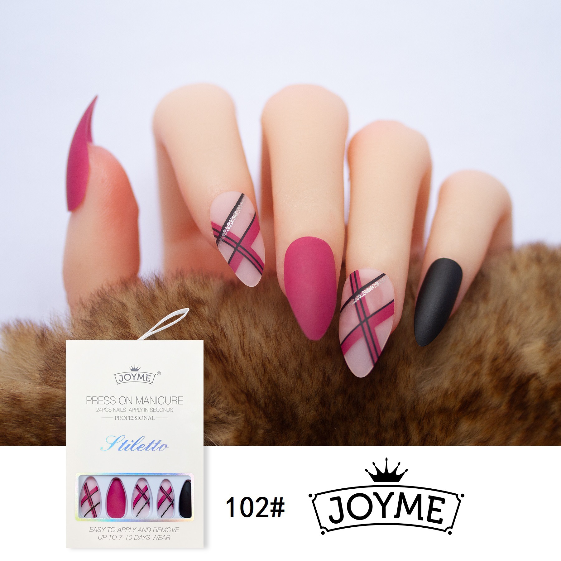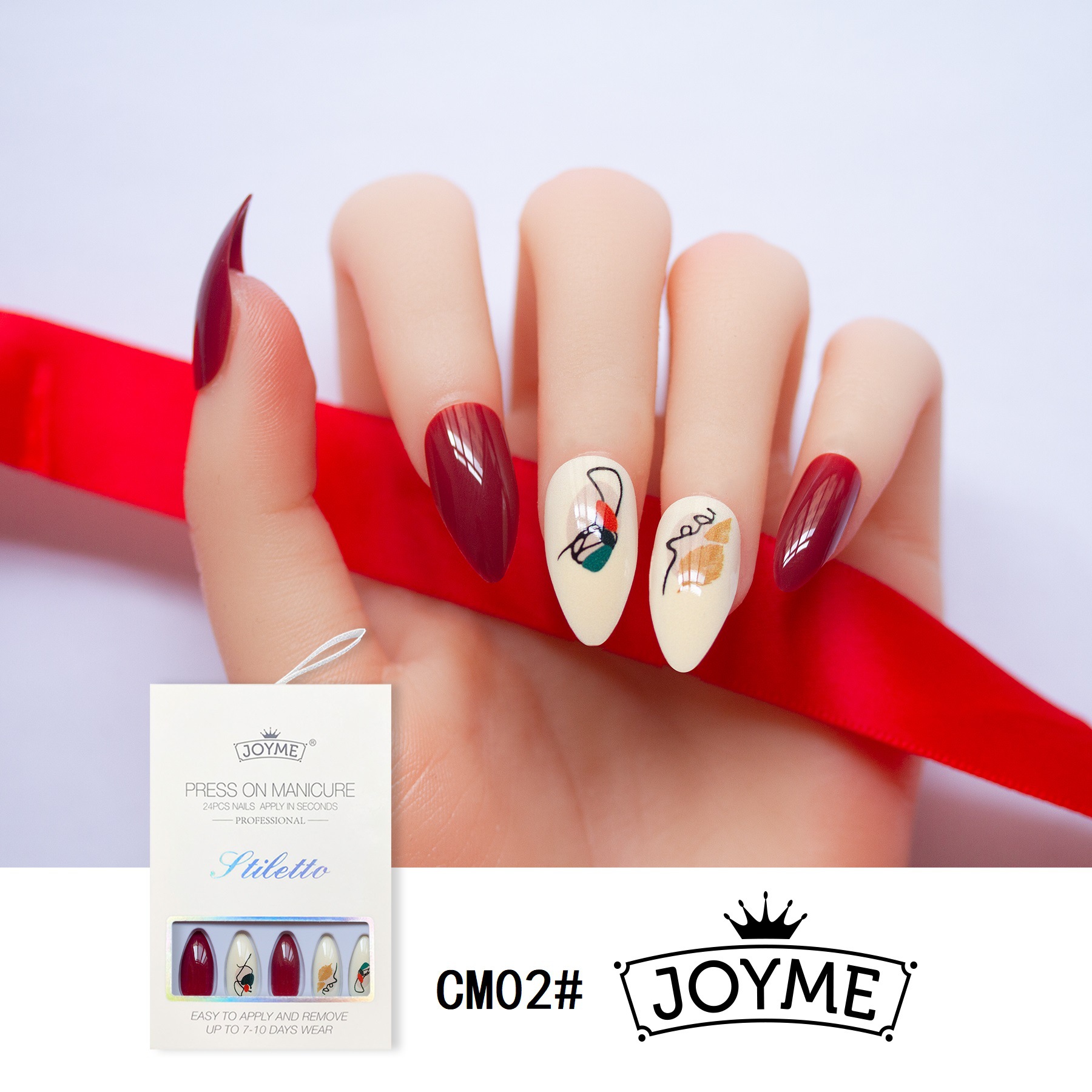 现货跨境热销长尖头水滴甲假指甲贴片美甲片INS24片丝带穿戴美甲