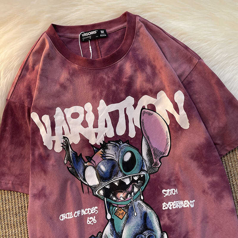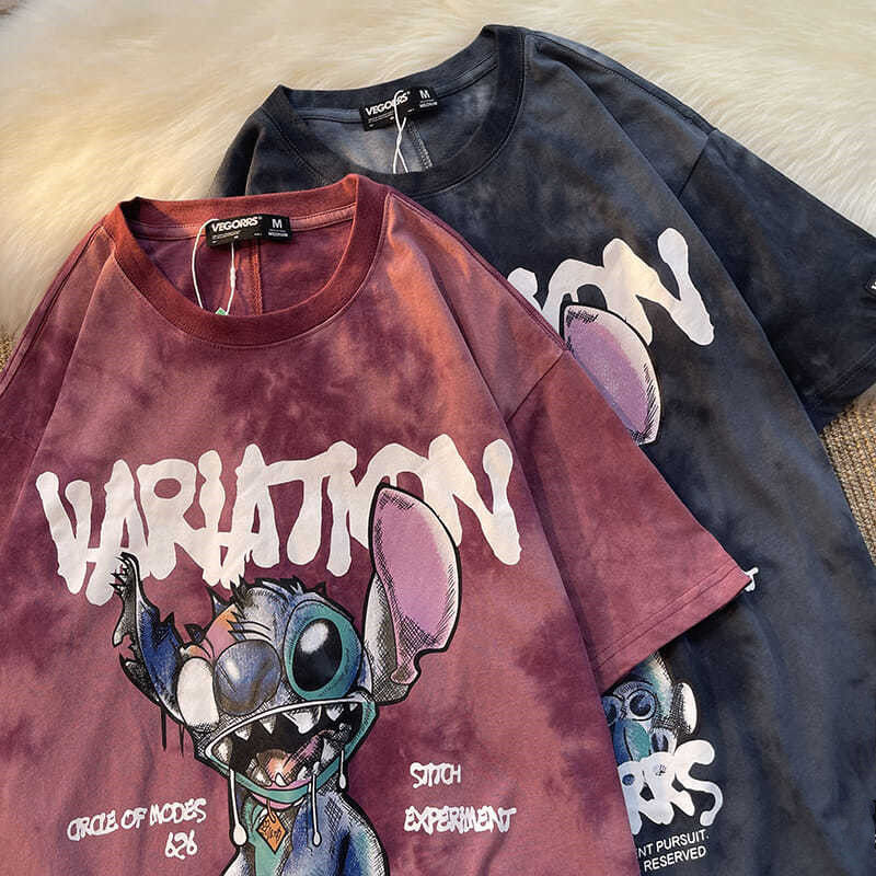 跨境欧美2022夏季新款情侣装扎染宽松短袖T恤女学生款式印花上衣