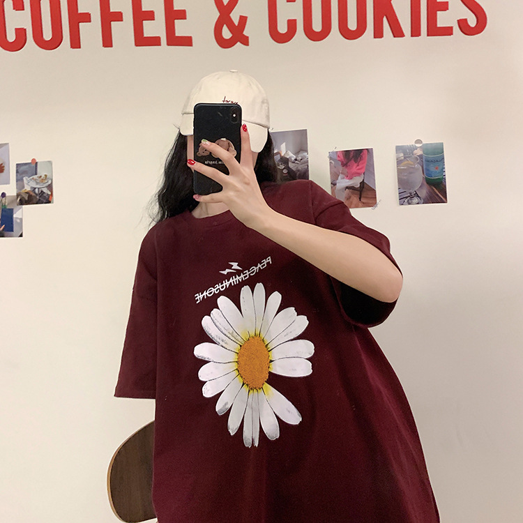 宽松韩版情侣装ins超火小雏菊印花设计甜美休闲百搭短袖学生上衣