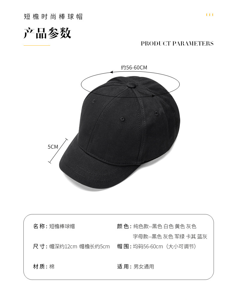 短帽檐帽子男ins夏季鸭舌帽潮牌防晒休闲透气新款男士遮阳棒球帽