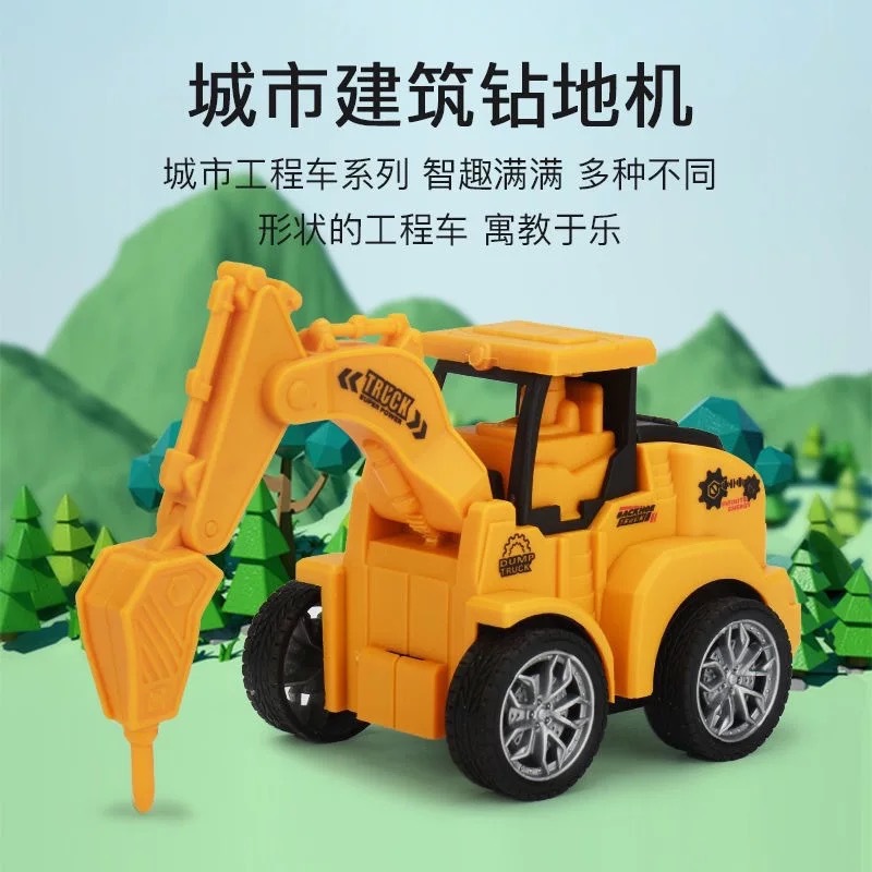 跨境儿童按压工程车男孩女孩宝宝益智趣味模型仿真回力惯性玩具车